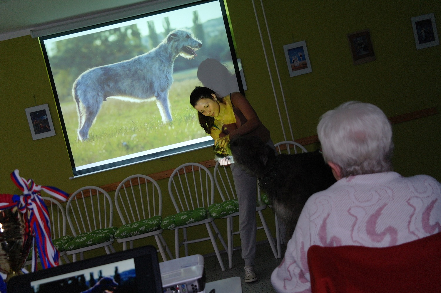 Dozvěděli jsme se mnoho zajímavého o jednom z největších psích plemen na světě. Maxík má (jako všichni vlkodavové) velice klidnou a mírnou povahu, rád se pomazlil s každým, kdo měl chuť a odvahu. :) Za to také dostal od klientů pamlsek. Seznámení s Maxíkem nám všem ukázalo, že velký pes neznamená vždycky nebezpečný nebo zlý.