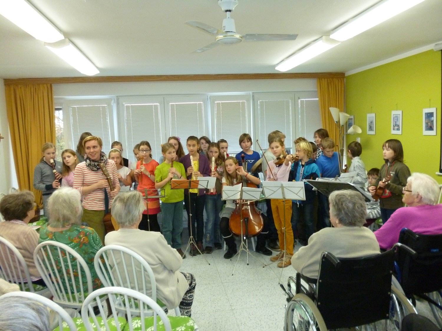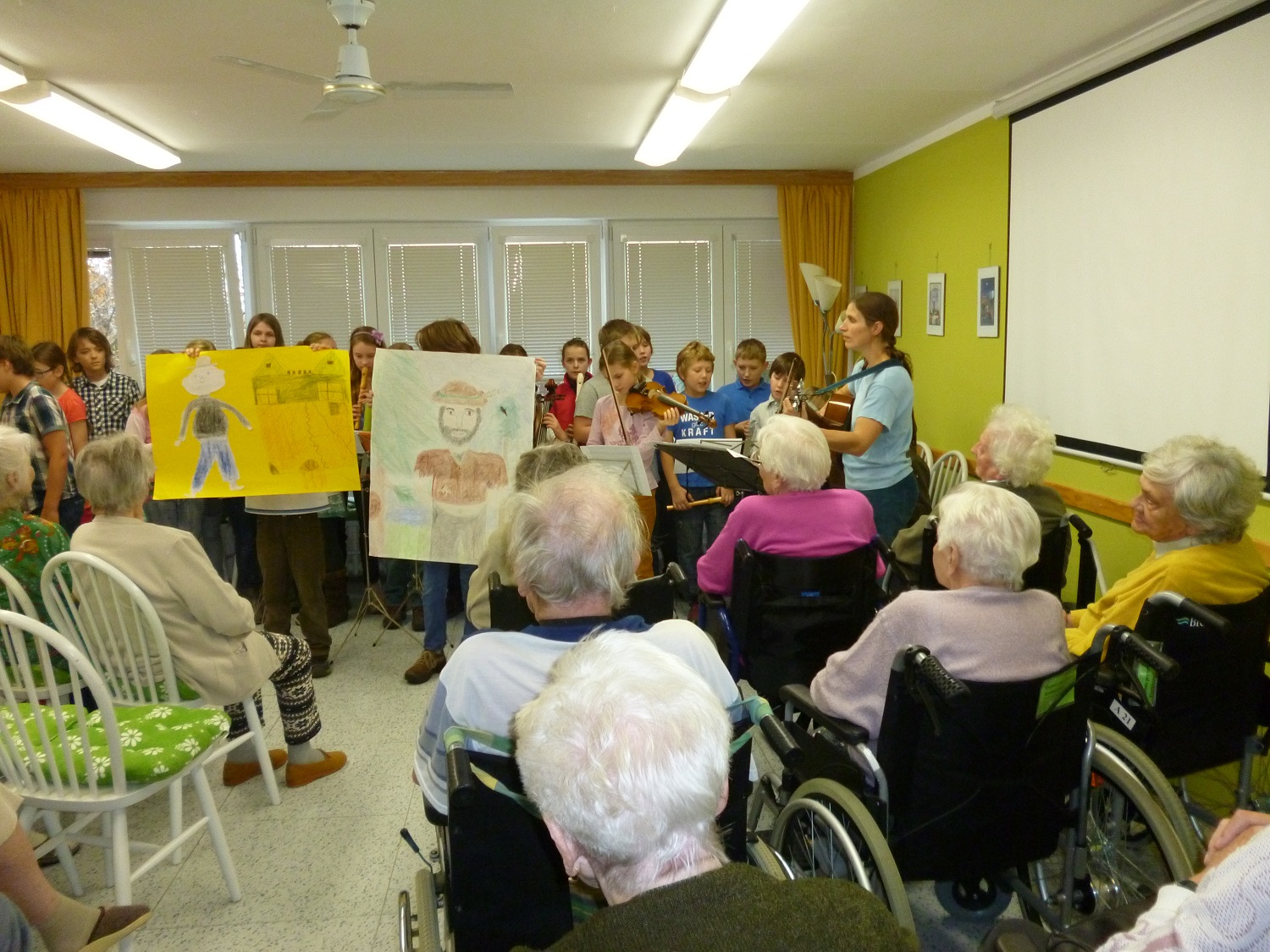 Žáci z Waldorfské základní školy z Brna - Žabovřesk nám zahráli své hudebně-divadelní představení na motivy brněnské pověsti o loupežníku Babinském. Děti si přinesly nejen vlastnoručně malované kulisy, ale i hudební nástroje, kterými doprovázaly svůj zpěv. Milým překvapením byly vlastnoručně upečené martinské rohlíčky, jimiž obdarovaly naše uživatele. Tradice praví, že každý, kdo dostane tento rohlíček, by ho měl rozlomit na polovinu a s někým se o něj rozdělit stejně jako sv. Martin se rozdělil o svůj plášť s žebrákem, kterému byla zima.