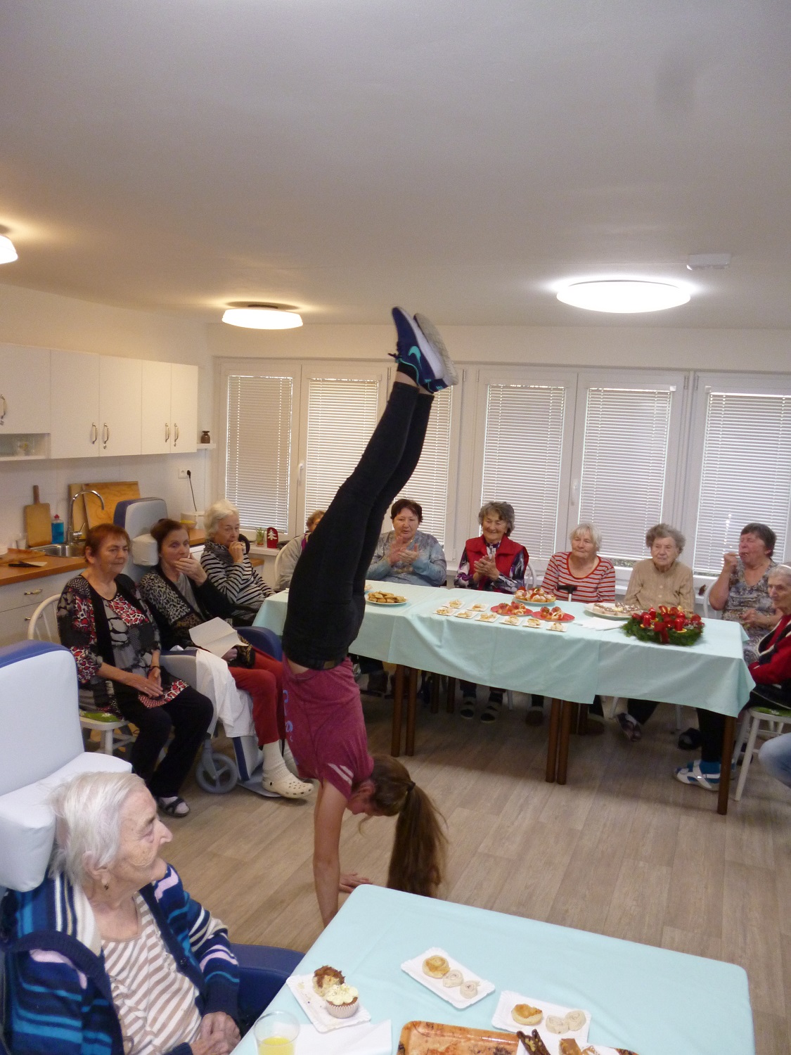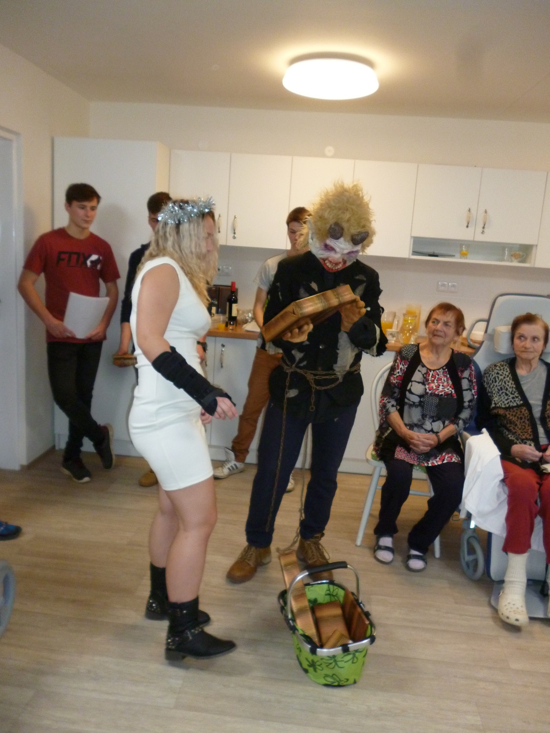 Studenti si pod vedením svých profesorů připravili nejen vystoupení plné hudby a ukázek sportů, ale i bohaté občerstvení. Jako krásné překvapení potom předal anděl s čertem dárky, v nichž se ukrývali různé hry a pomůcky právě pro rozvoj a udržení kognitivních funkcí. A my bychom chtěli jak studentům, tak profesorům, poděkovat nejen za dary, ale hlavně za dlouholetou fungující spolupráci, která obohacuje nás všechny.