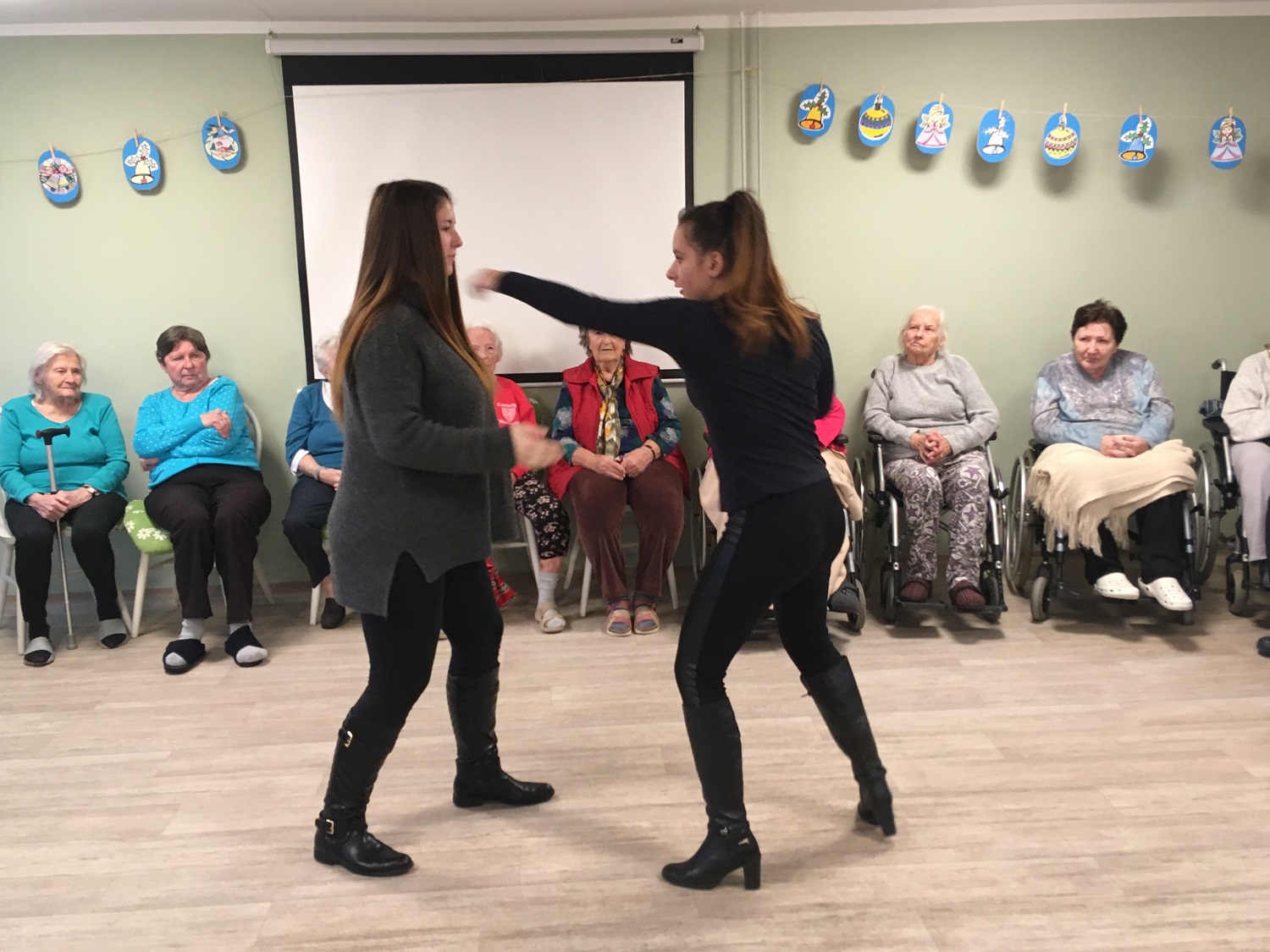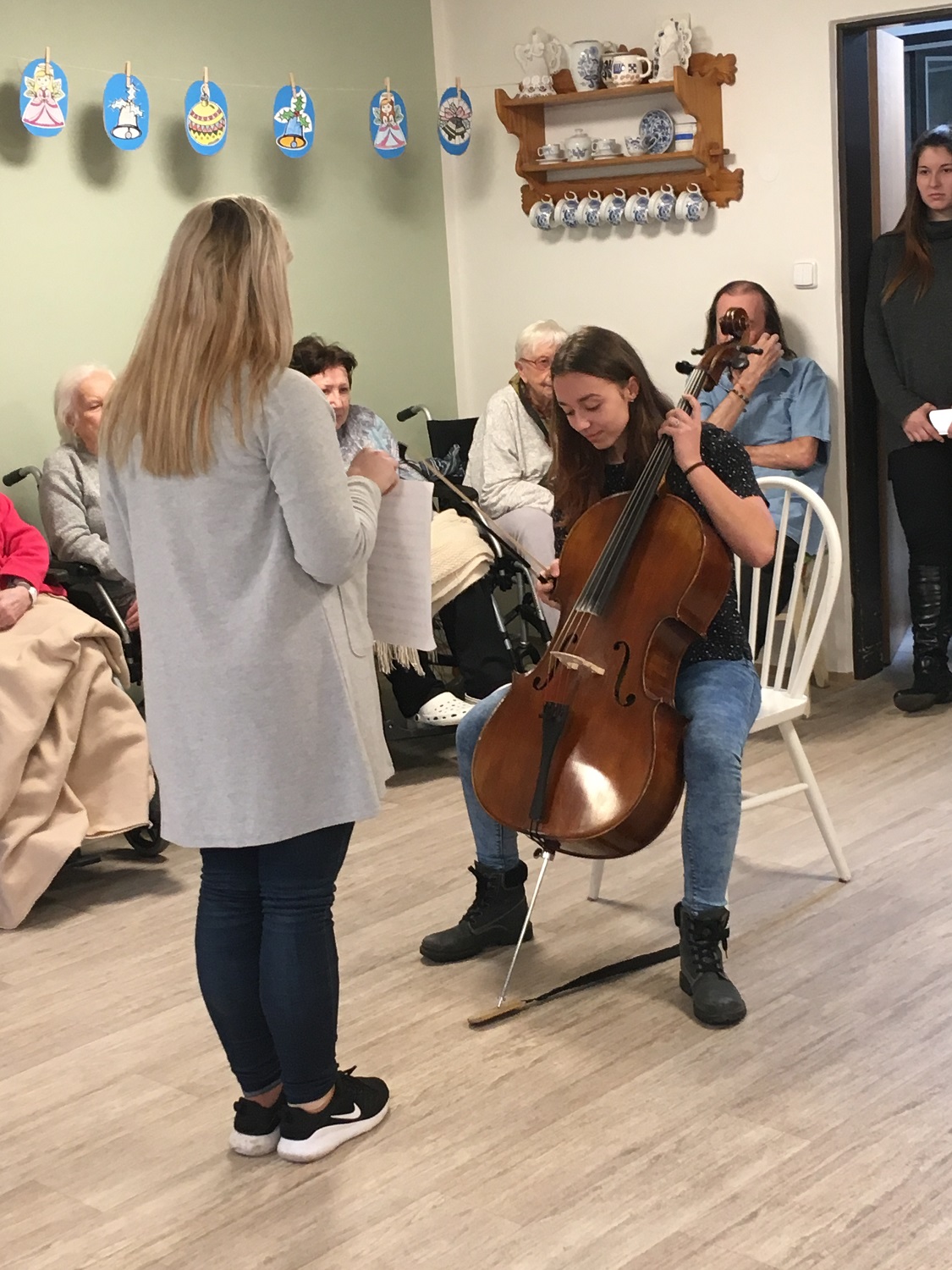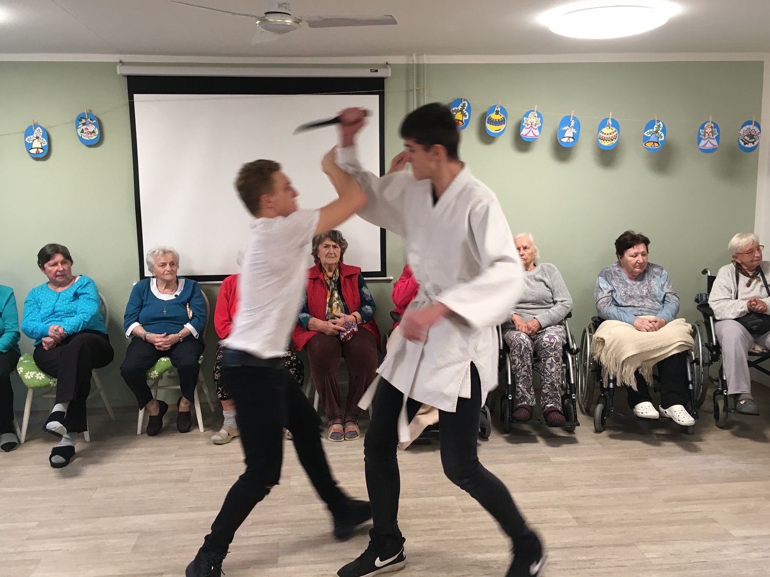 Studenti si pro nás připravili ukázky z bojových sportů a sebeobrany, také několik prvků z gymnastiky a tělesné výchovy. Slyšely jsme krásné skladby na kytaru, violoncello a klarinet. A také jeden z pedagogů nás doprovodil s dcerou na kytaru při zpěvu koled. Celé setkání bylo moc milé a završilo celý rok společných projektů a akcí. Těšíme se na rok příští, že se opět se BPA uvidíme.