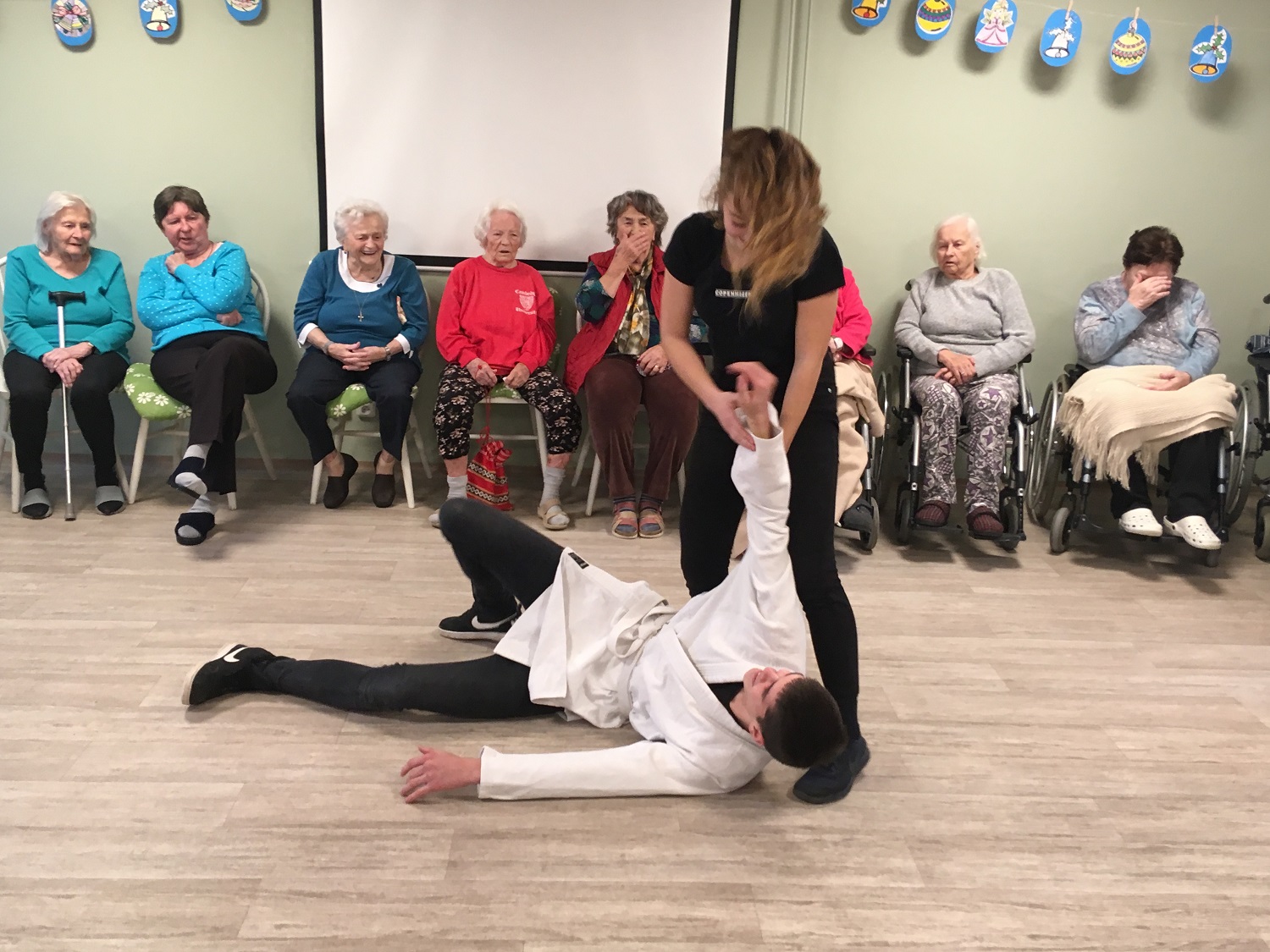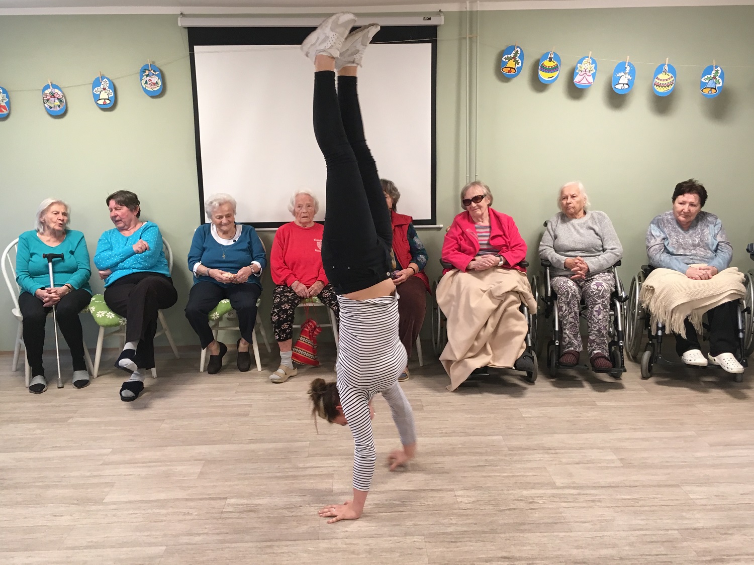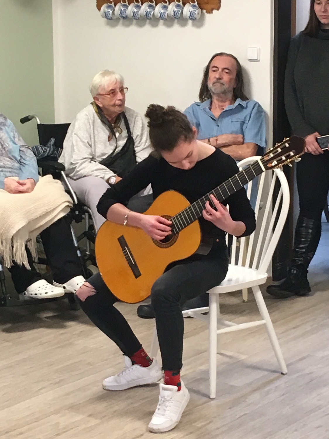 Studenti si pro nás připravili ukázky z bojových sportů a sebeobrany, také několik prvků z gymnastiky a tělesné výchovy. Slyšely jsme krásné skladby na kytaru, violoncello a klarinet. A také jeden z pedagogů nás doprovodil s dcerou na kytaru při zpěvu koled. Celé setkání bylo moc milé a završilo celý rok společných projektů a akcí. Těšíme se na rok příští, že se opět se BPA uvidíme.