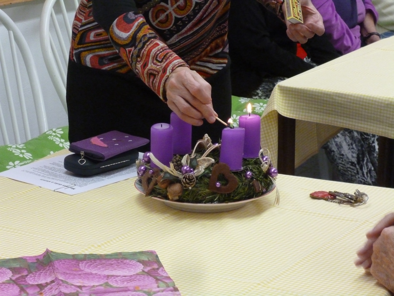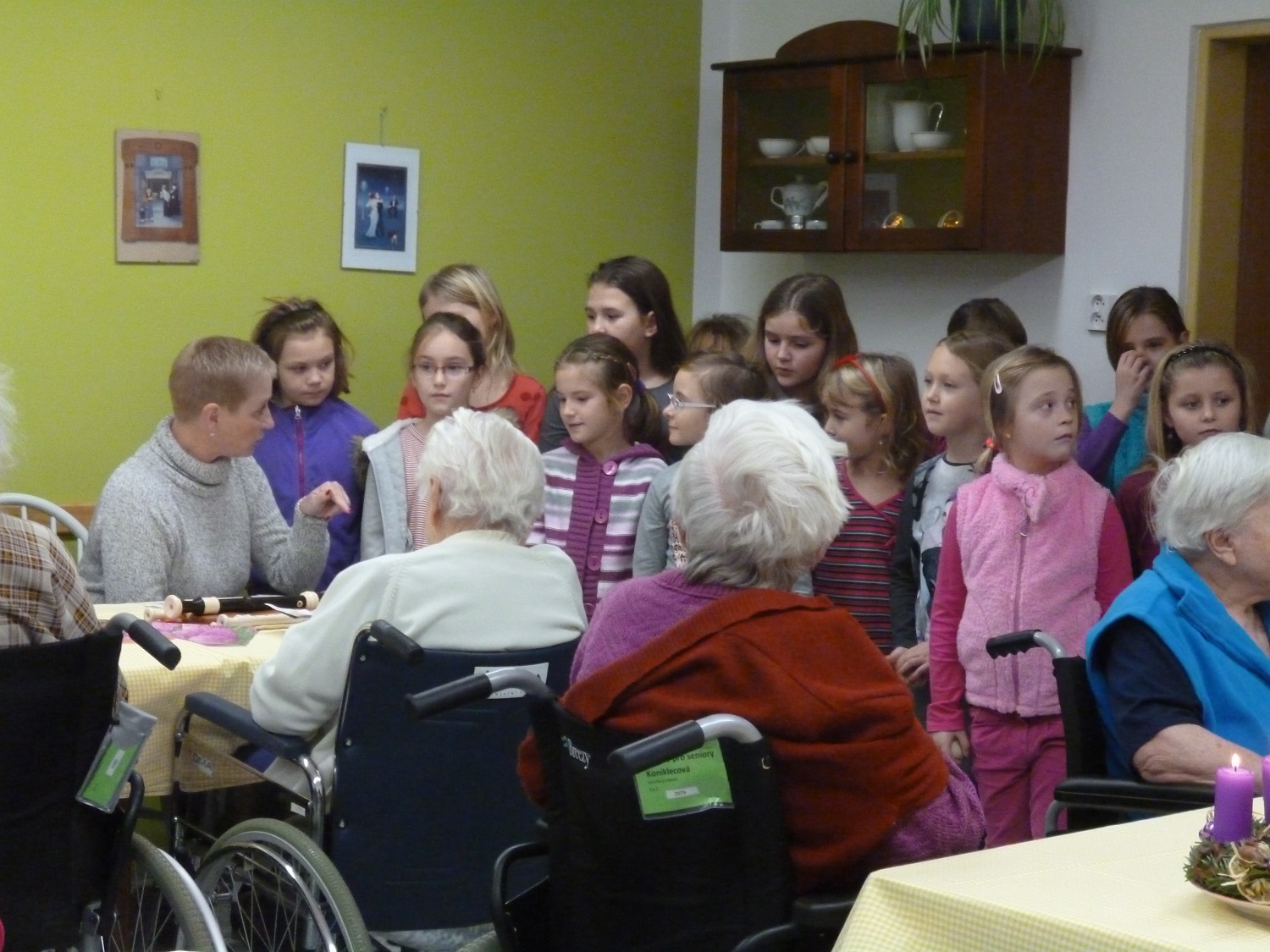 Čtvrté adventní posezení se neslo opět ve slavnostním duchu. O milou a příjemnou náladu se postaraly děti a paní učitelky z družiny ZŠ Vedlejší. Své vystoupení plné písniček a básniček ukončili zpěvem koled, které si s chutí společně s nimi zazpívali i naši uživatelé. Sladkou odměnou pro všechny byl s láskou upečený jablečný závin.