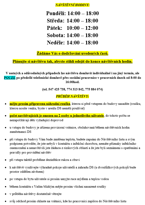 Bohužel opravdu i u nás v Domově zůstávají v platnosti zavedená bezpečnostní opatření, proto považujeme za vhodné připomenout jejich přehled. (viz. níže)