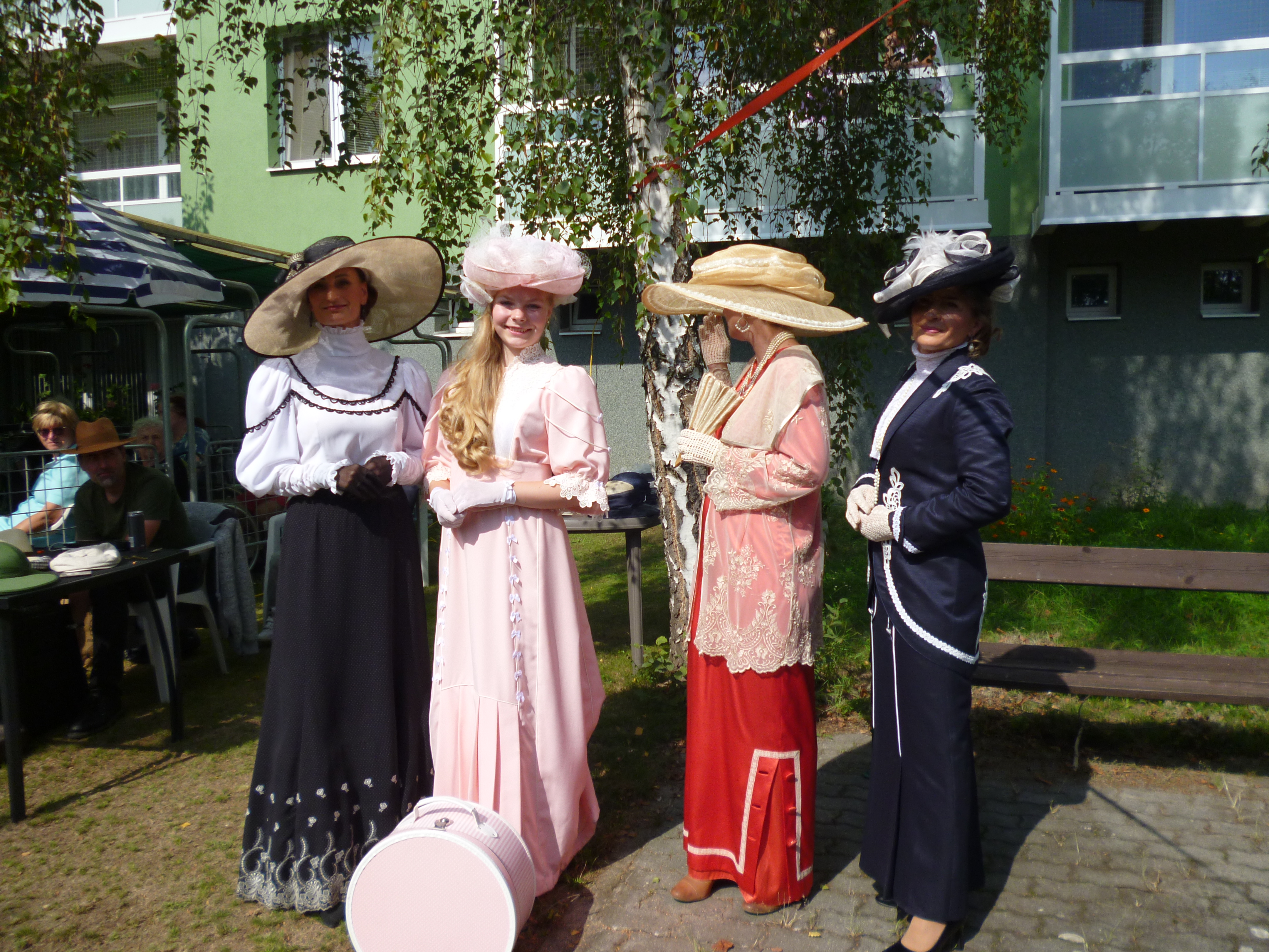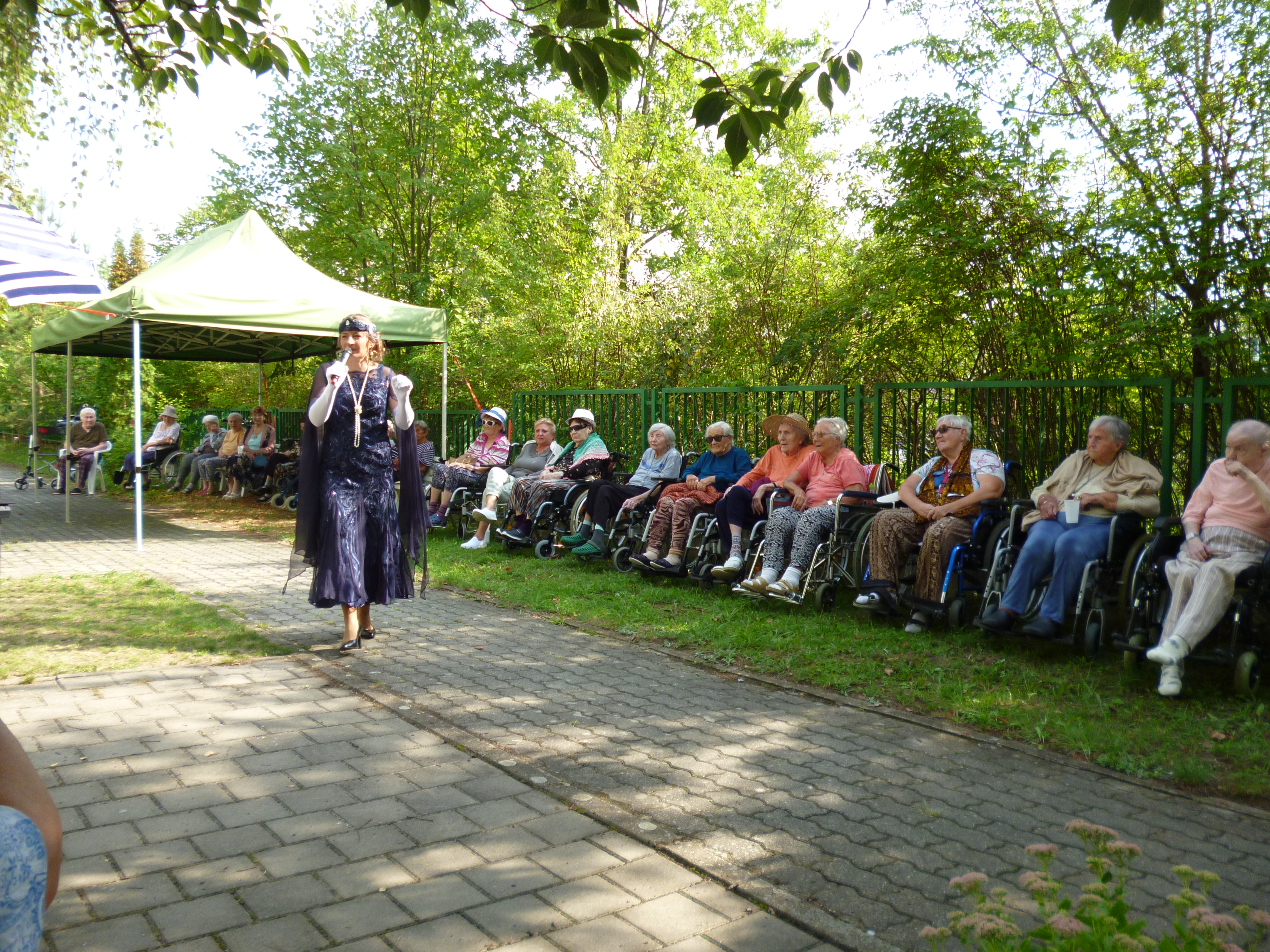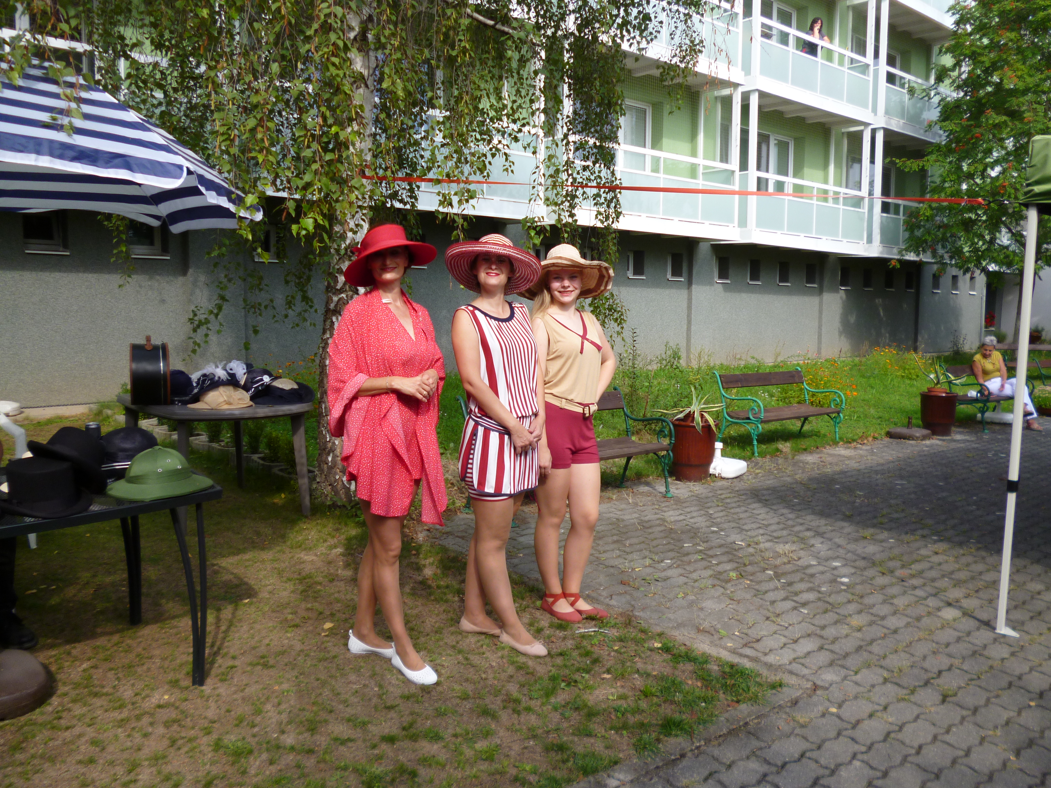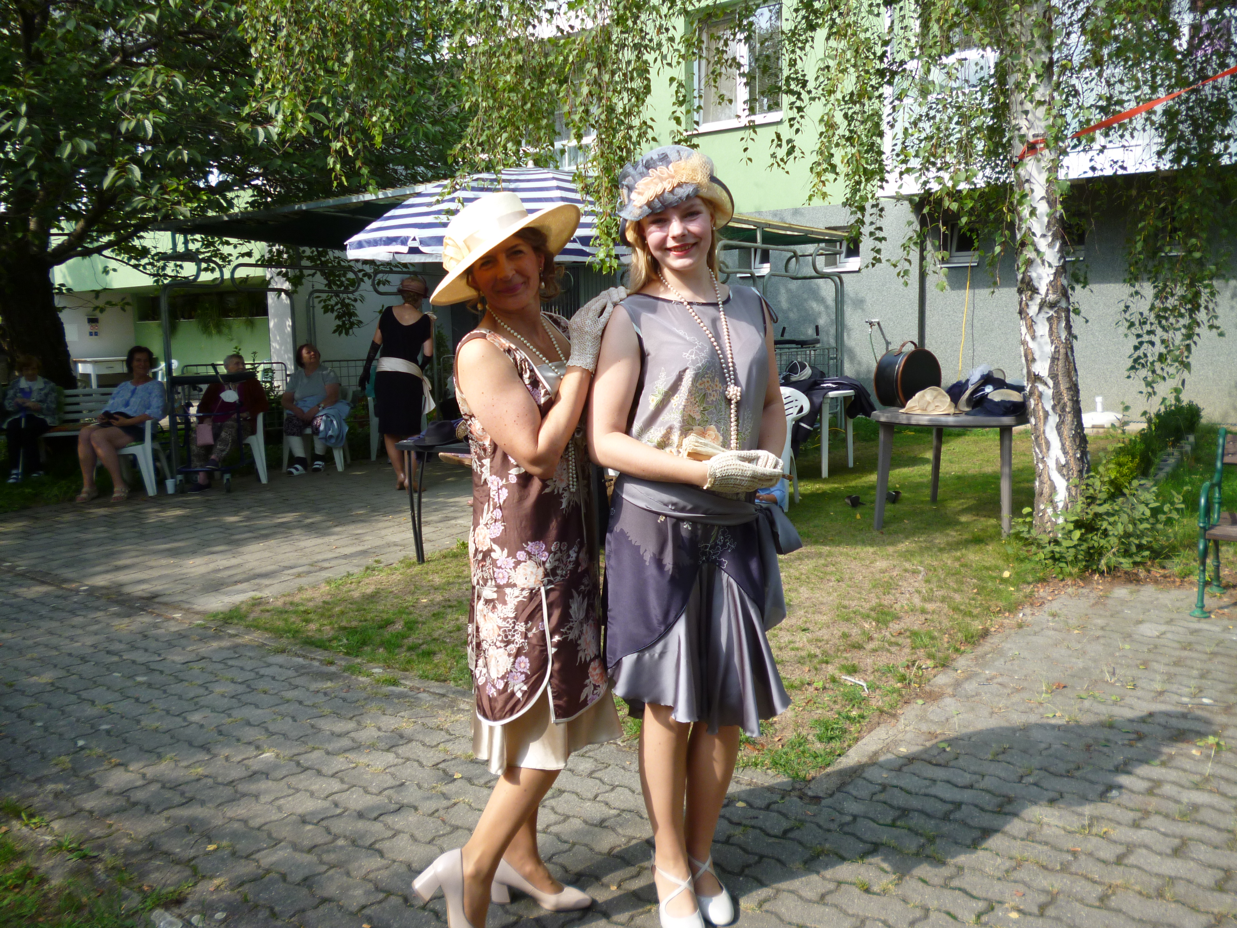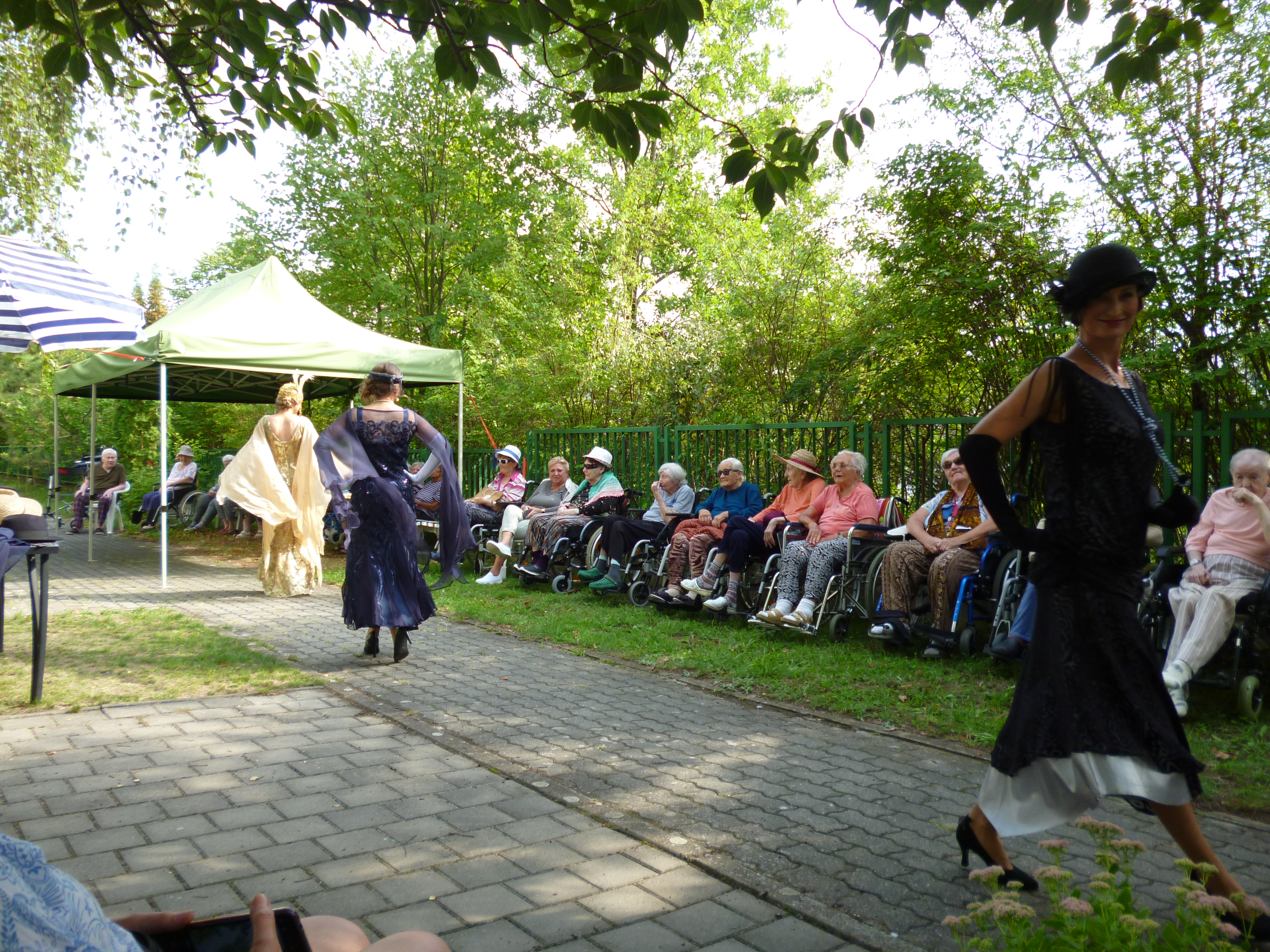 Letní odpoledne v zahradě domova ovládla noblesa, krása a elegance. Navštívil nás Kloboukový klub. Manekýnky s paní majitelkou Radkou Chabičovskou se postaraly opět o výjimečný zážitek. Krásné šaty a především klobouky se lehce vznášely po zahradě jako pestrobarevní motýli. Manekýnky vynášely modely z různých časových období a paní Radka velice poutavě provázela přehlídku zajímavými informacemi z jednotlivých historických období. Některé naše uživatelky se rozpomínaly na dobu, kdy byly mladé a tyto modely a klobouky se běžně nosily. Děkujeme Kloboukovému klubu za krásné odpoledne.