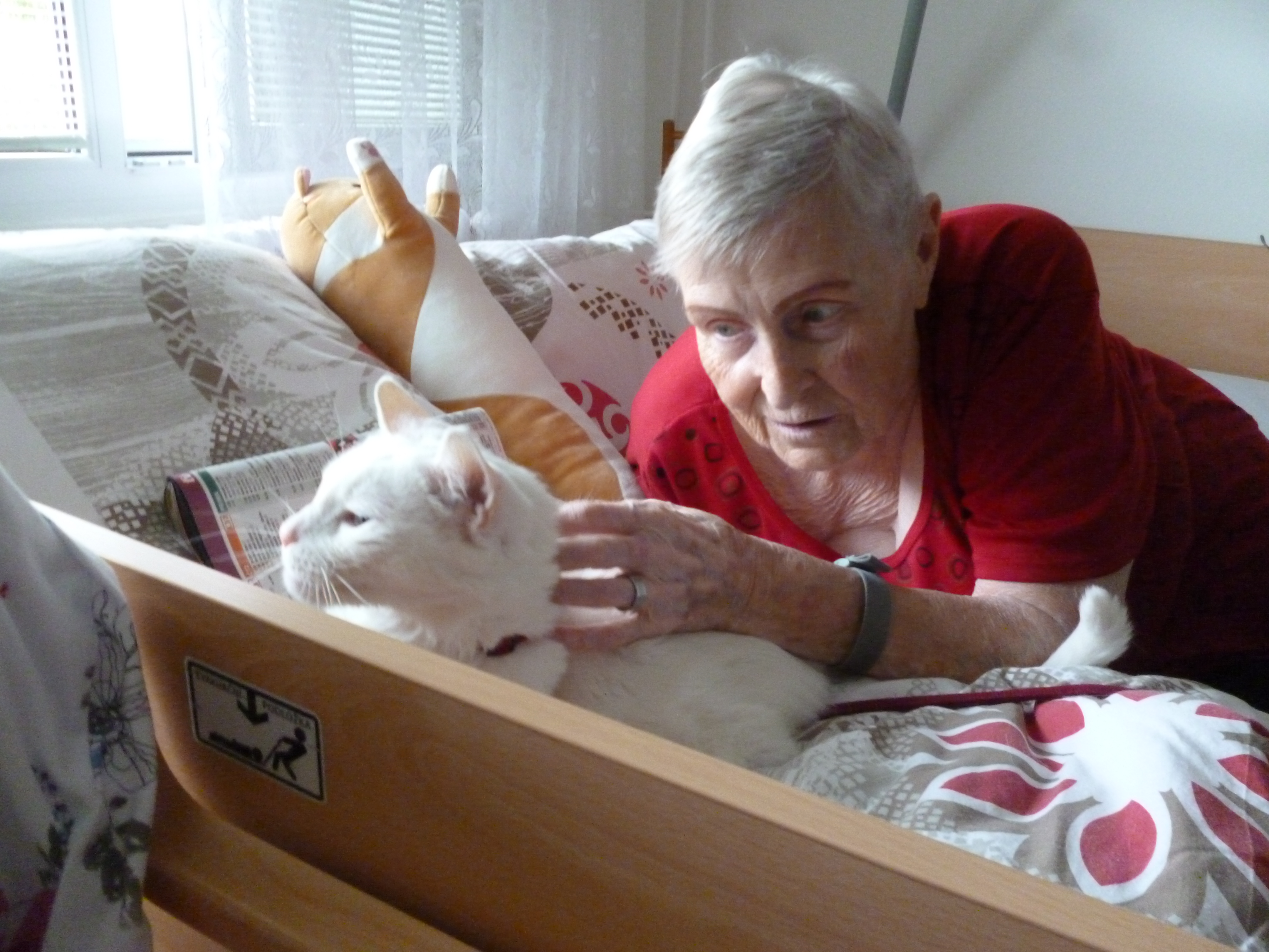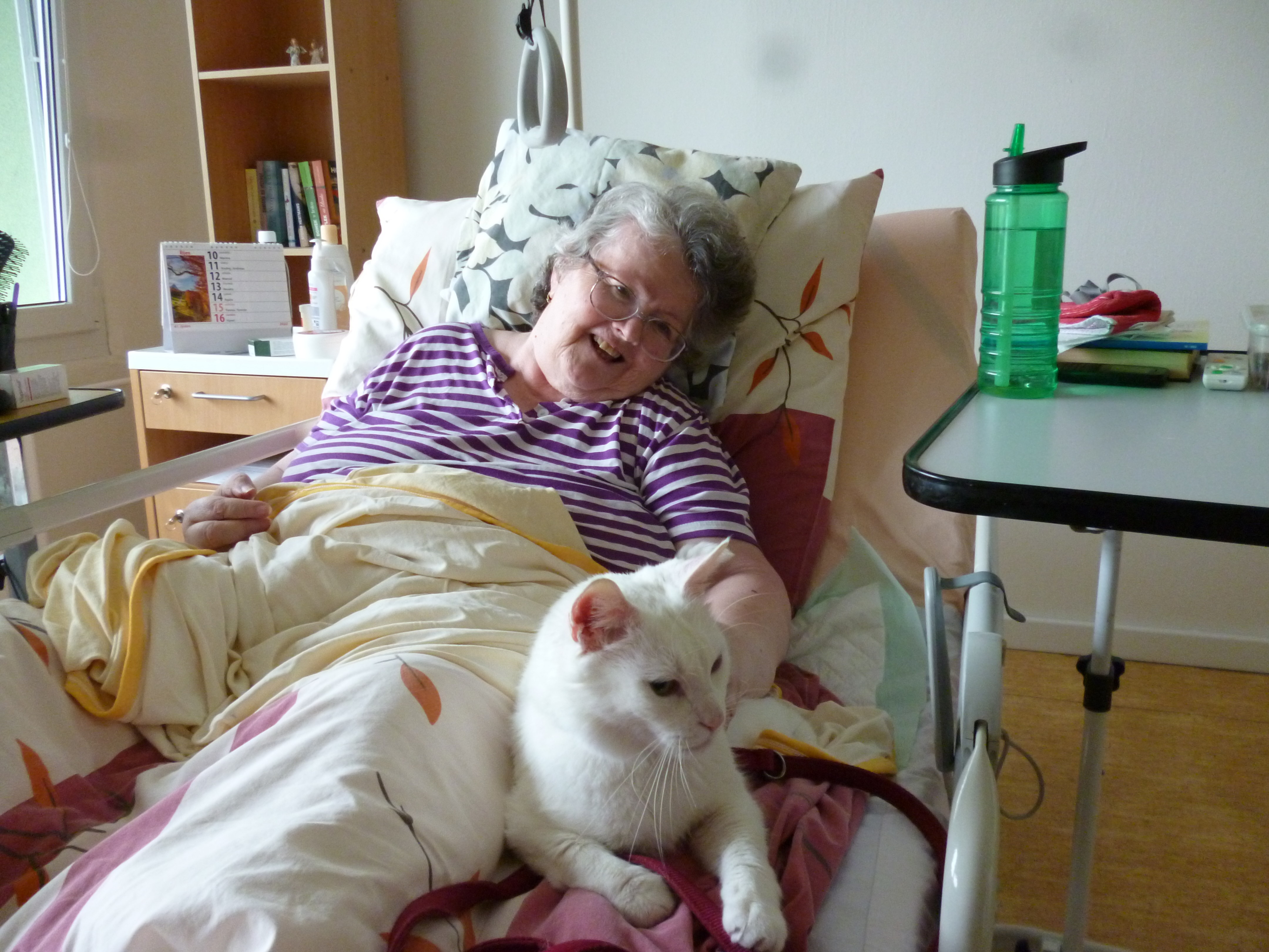 Všichni milovníci zvířátek ví, že není krásnější pocit, než hlazení heboučkého kožíšku. Velká radost panovala na pokojích, které nově v rámci felinoterapie navštívila sněhobílá kočka Minda, s úžasnou Terezkou, která k nám už pár let dochází na canisterapii. Radost z kočičky byla velká a tak jsme se domluvily, že se budou psí kluci poctivě s kočičkou střídat.
