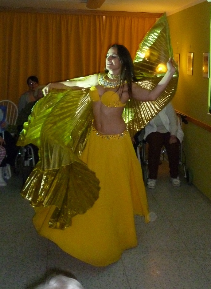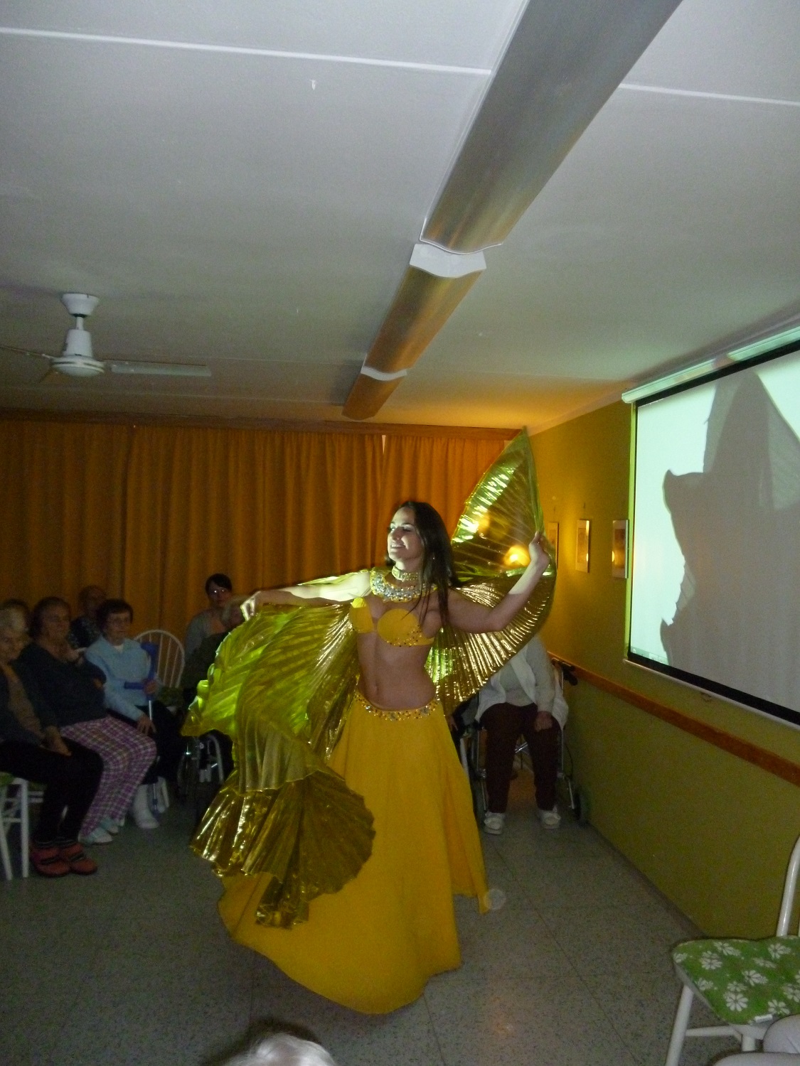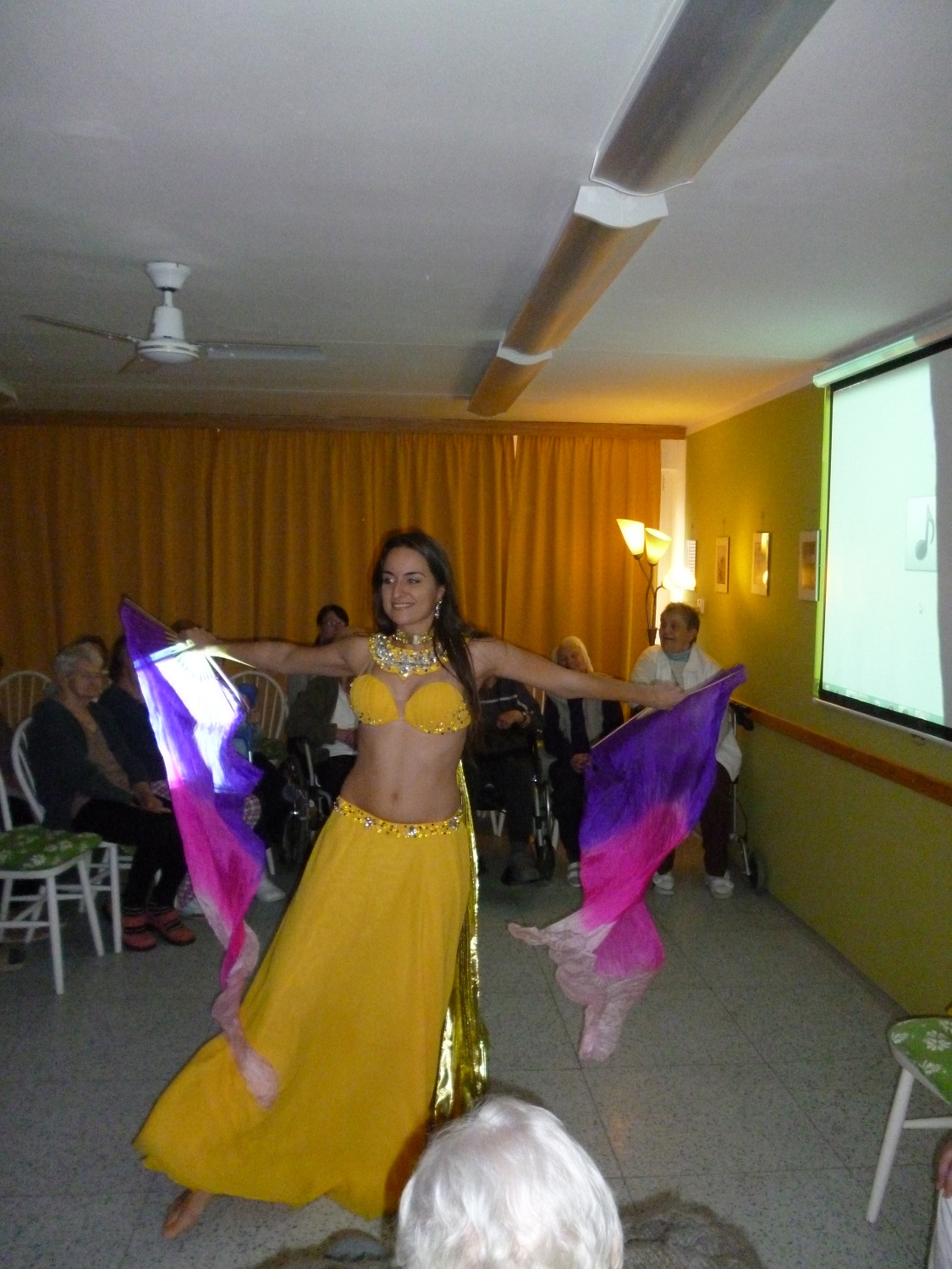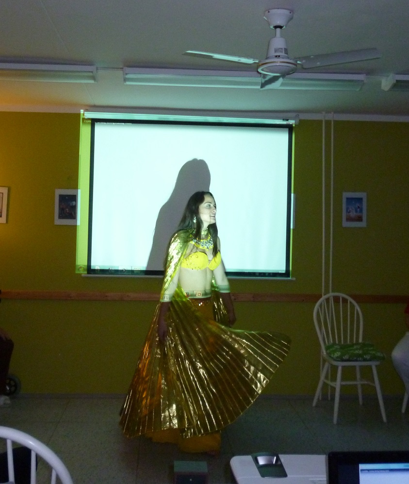 V úvodu přednášky se s námi podělila o svoji životní cestu, která ji k tanci přivedla. Za největší dosavadní vrchol kariéry považuje bronzovou medaili z největší mezinárodní soutěže orientálního tance pořádané v USA. Při sledování prezentace jsme se ocitli na pódiu se špičkovými světovými tanečnicemi, mezi které účastnivší se Jana právem patří. Zapojením naší fantazie jsme se na kouzelném létajícím koberci přenesli do překrásného paláce v dávné Persii, kde pro potěchu sultána tančila jako barevný motýl charismatická tanečnice. Věříme, že ochutnávka orintálního tance nebyla v našem domově poslední...