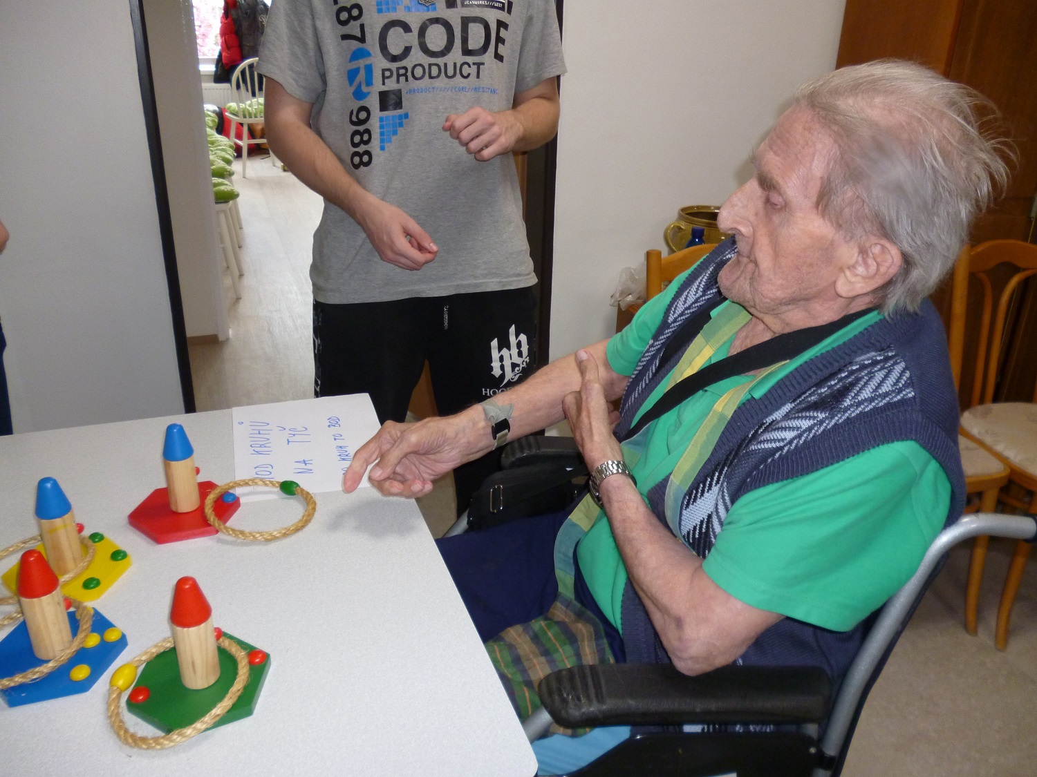 V rámci spolupráce s Bezpečnostně správní akademií jsme mohli uspořádat sportovní odpoledne pro uživatele, kteří mají stále chuť spolu alespoň symbolicky soupeřit a porovnat síly v různých disciplínách, zaměřených jak na motorické, tak na kognitivní funkce. Díky studentům můžeme pro každého, kdo potřebuje, zajistit doprovod nebo řidiče k vozíku. Stejně jako se uživatelé mohou potkat spolu vzájemně, tak je to výborná příležitost setkat se s mladými lidmi, jinou generací, ale i se pobavit, zasmát se a udělat si hezký den.
