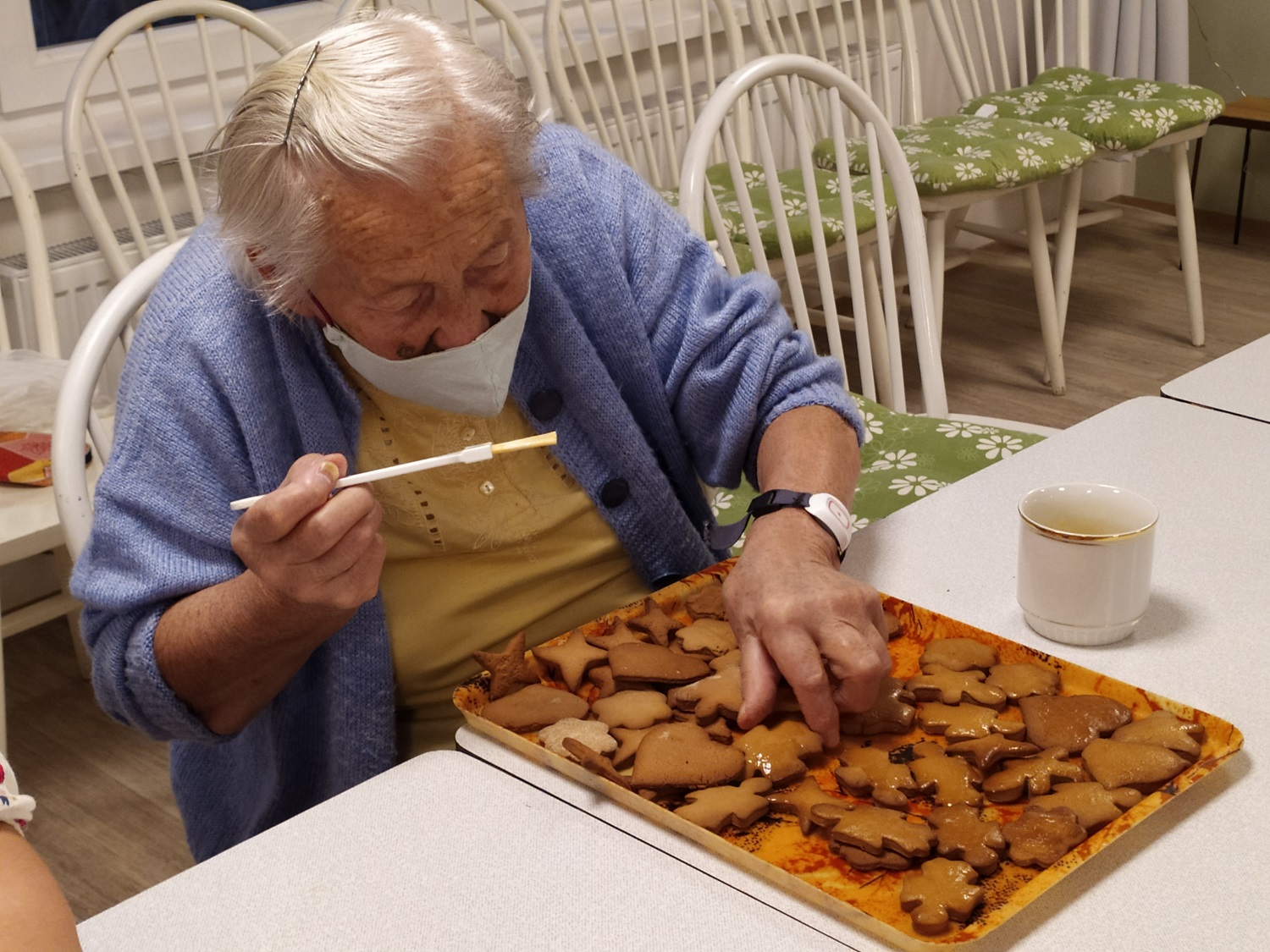 Ať je situace jakákoliv, pilně pracujeme na vytváření adventní a vánoční atmosféry. Domov provoněly perníčky, dámy zavzpomínaly na roky praxe v pečení a vytvořily krásné perníčky. Další klientky zase vytvořily ozdobené větvičky, které budou v každém pokoji. Na chodbách zní koledy a svítí světýlka na vánočních stromečcích. My jsme na Vánoce připraveni.