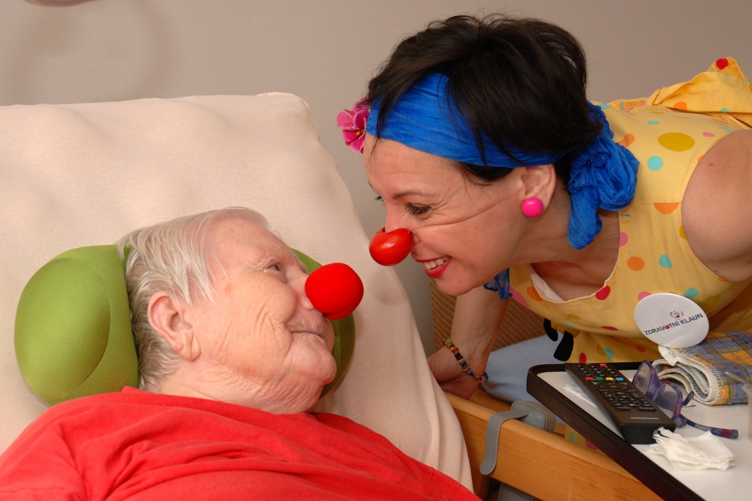 Je kouzelné sledovat, jak se klientům nejdřív otevřou oči úžasem, kdo to k nim přichází a v zápětí se jim na tváři rozzáří úsměv. Děkujeme organizaci Zdravotních klaunů, že si na nás udělali čas.