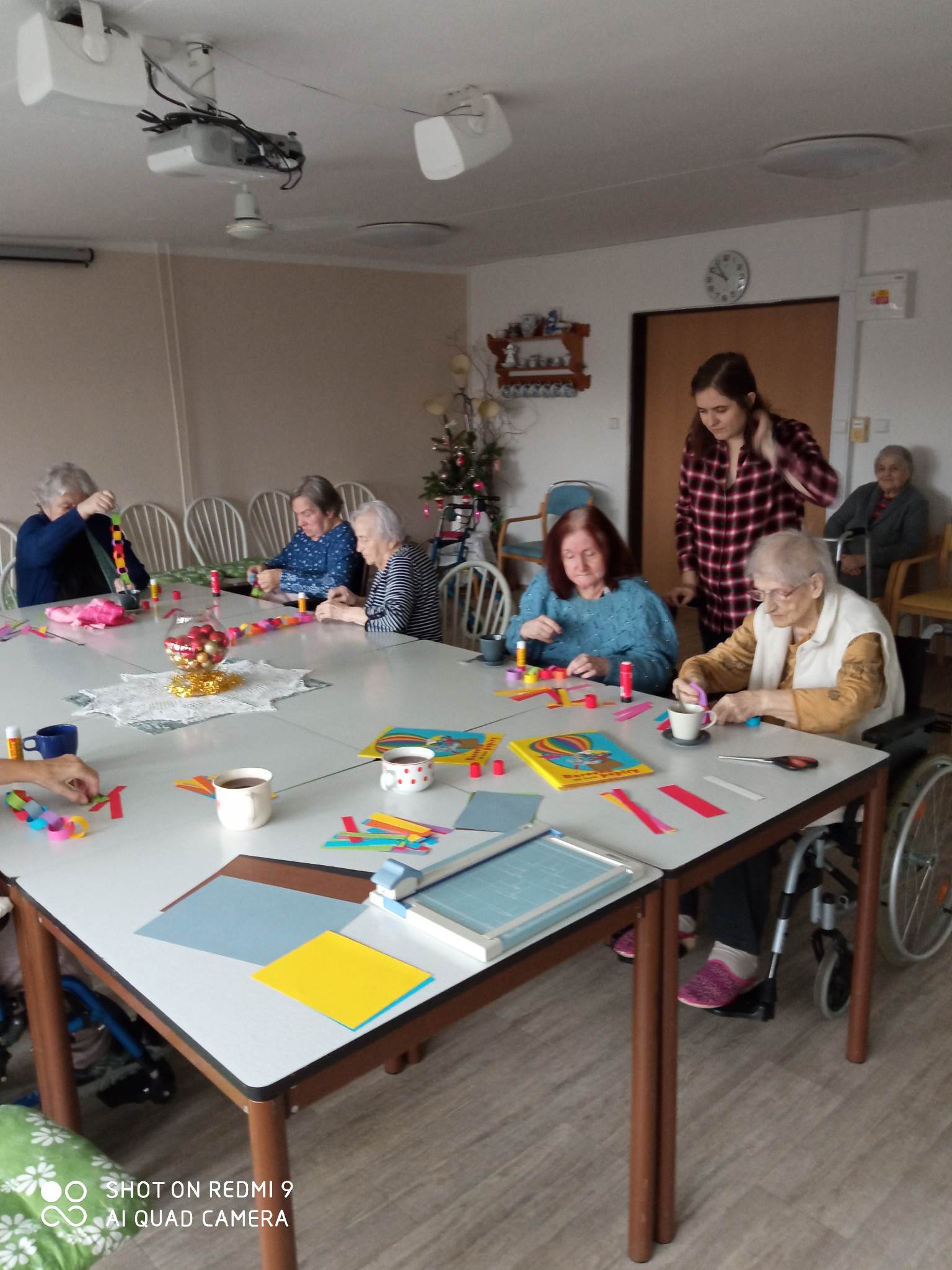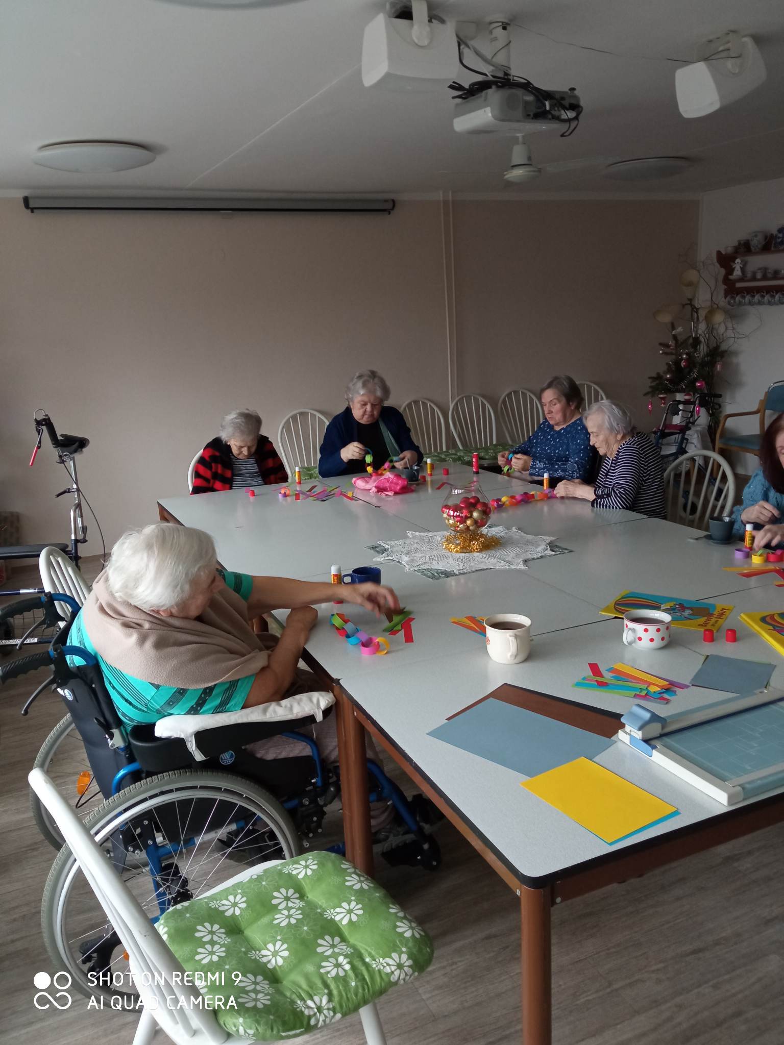 Společně s uživateli jsme si zavzpomínali na dětská léta, kdy jsme vyráběli buď sami nebo s našimi dětmi papírový řetěz na stromeček. Nápomocen nám byl svou přítomností i pejsek Verdel.