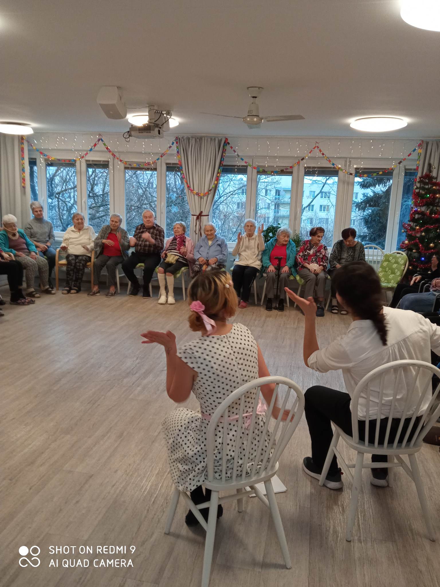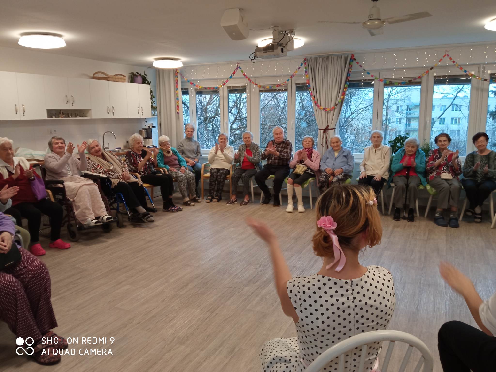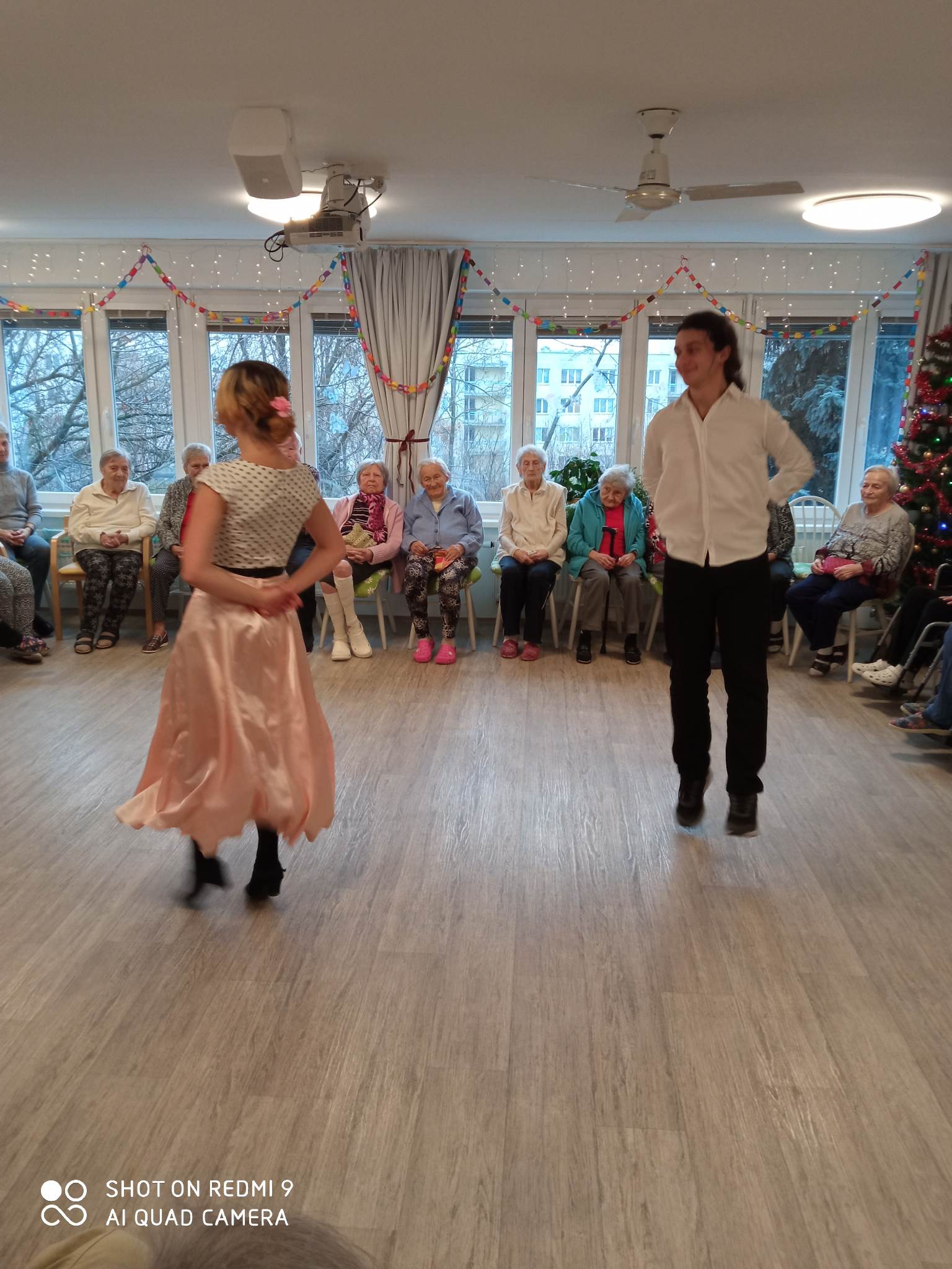 Taneční pár nás provedl historií společenského tance od tanců renesančních královských dvorů, přes českou polku a vznosný valčík, až do dob charlestonu, swingu, rock’n’rollu a twistu. Živé taneční ukázky byly proloženy poutavými kontexty doby. Na závěr jsme si s tanečníky jednotlivé tance předvedli vsedě na židlích za pomocí rukou.