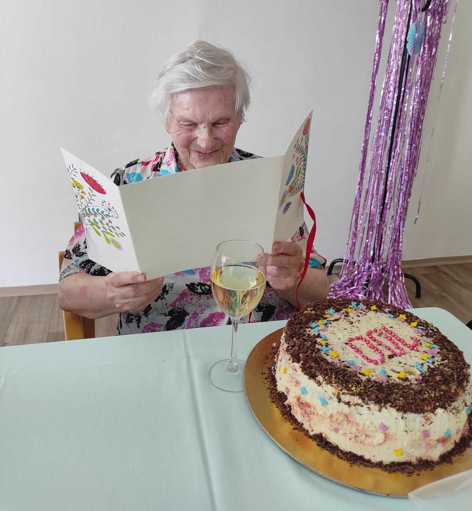 Dne 22.8.2023 oslavila naše milá uživatelka paní Oldřiška Stejskalová sté narozeniny.