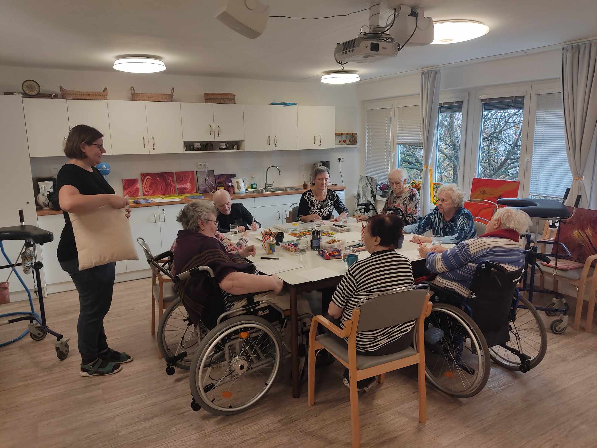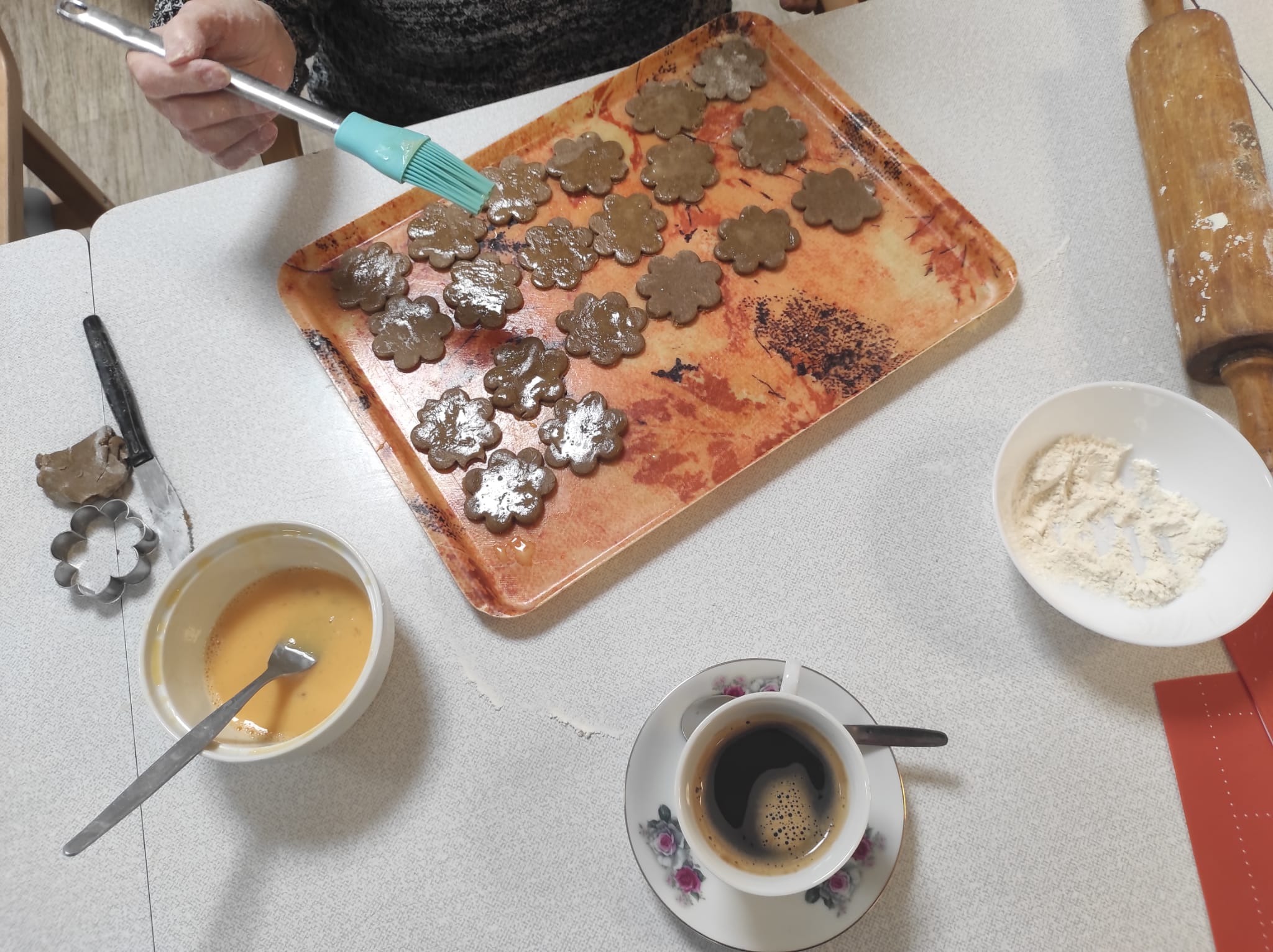 Měsíc listopad byl bohatý i na další akce: výstava obrazů a tvoření s naší bývalou pracovnicí, pečení cukroví, setkání s Rezekvítkem a další pravidelné aktivity.