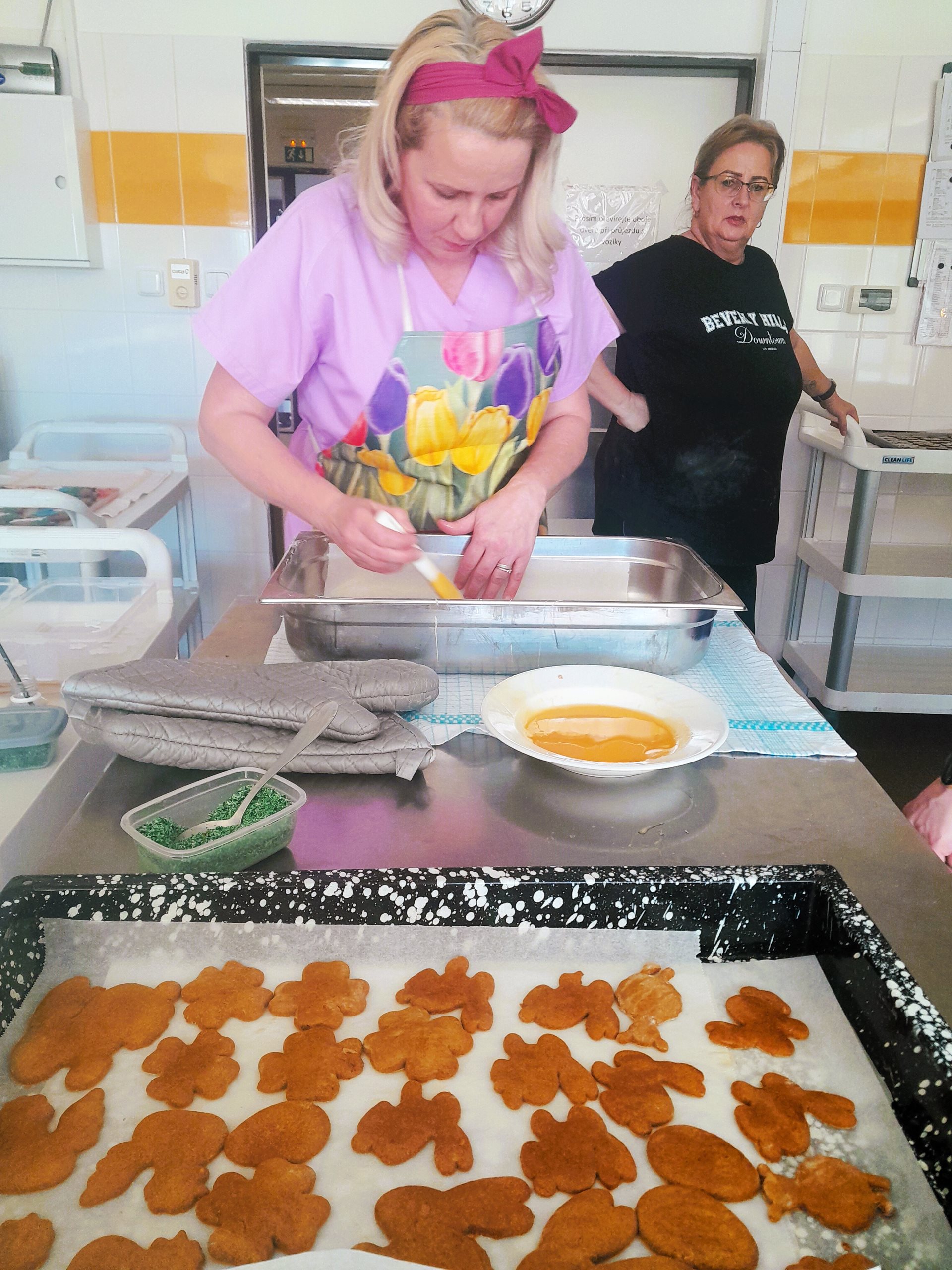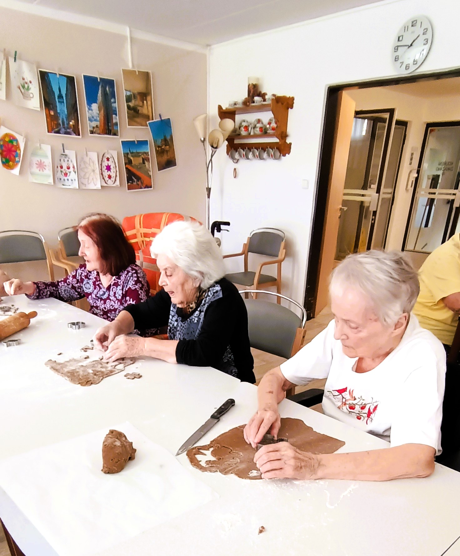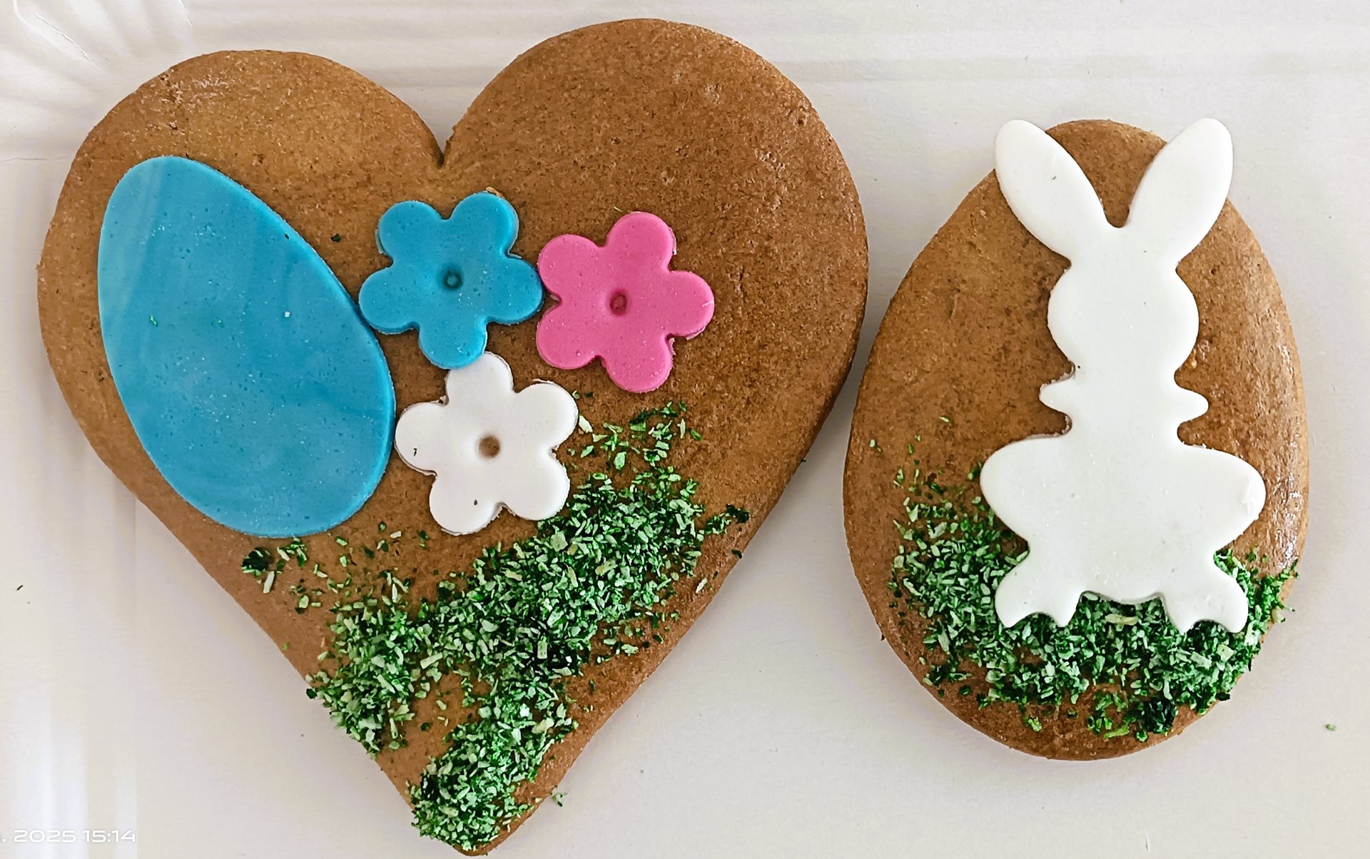 Dnešní den byl krásný. Sluníčko svítilo a my jsme se odpoledne sešli, abychom se začali připravovat na Velikonoce. A protože rádi pečeme, rozhodli jsme se, že si upečeme velikonoční perníky. A jak vidíte, sešlo se nás hodně. A z našich výsledků máme fakt radost. Práce nám šla od ruky.