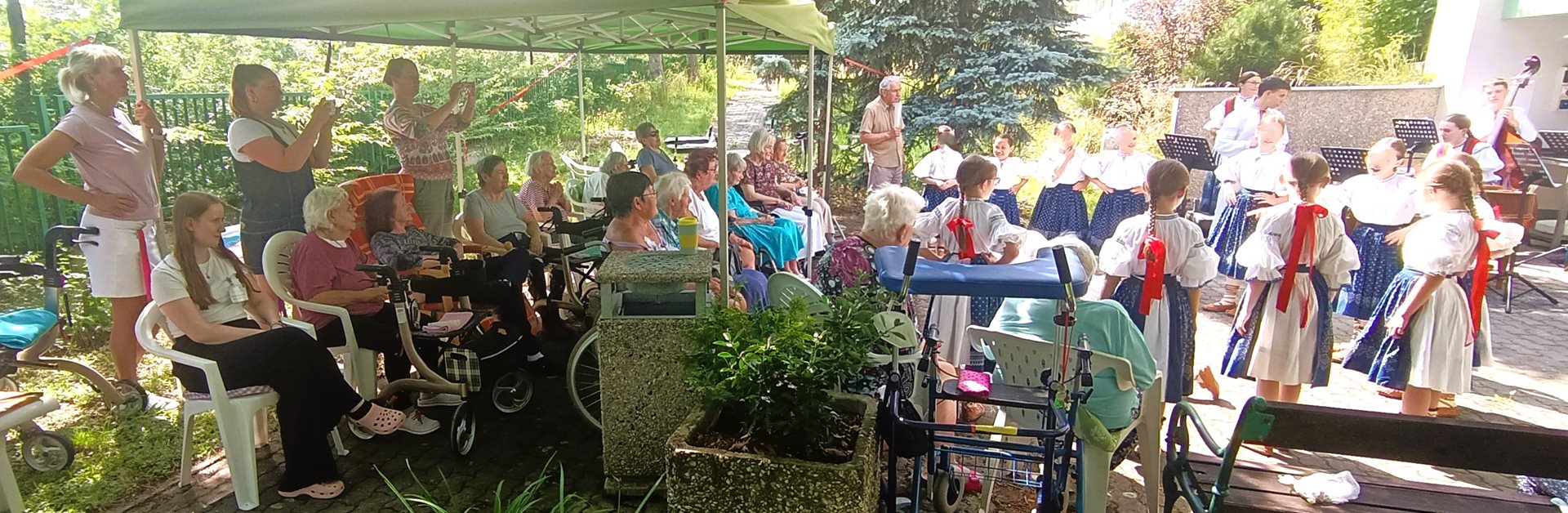Jak ten čas letí! A máme červen pryč. A jaký to byl pěkný měsíc. V červnu už konečně přišlo sluníčko, takže jsme mohli některé aktivity realizovat na naší zahradě. Proběhly všechny pravidelné aktivity a navštívily nás i děti. Rádi vzpomínáme na vystoupení dětí z MŠ Pomněnka a na děti ze souboru Brněnský Valášek. Na zahradě jsme si zazpívali lidové písně a zavzpomínali. To vše jedno odpoledne, když nám hrála a zpívala cimbálovka. Pojďte si prohlédnout fotky, které jsme si z našich akcí pořídili.