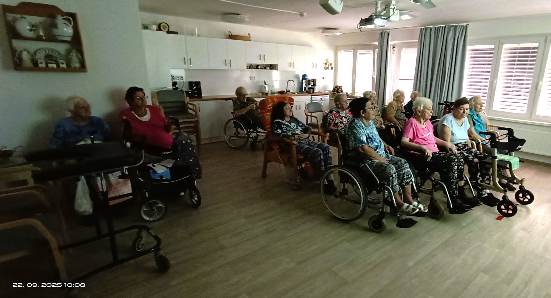 Máme další měsíc za sebou. V září jsme kromě našich pravidelných aktivit měli exkurzi na Hády společně s Rezekvítkem. Tam jsme trávili krásné dopoledne se studentkami BPA, které nám dělaly doprovod. Jedny společenské hry jsme prožili též se studenty, tentokrát ze SŠ Grohová. S Rezetkvítkem jsme se sešli ještě jednou v našem Domově, abychom si seznámili s ochranou přírody.Po prázdninách jsme se mohli opět setkat se psy v rámci canisterapie. A už se těšíme na říjen.