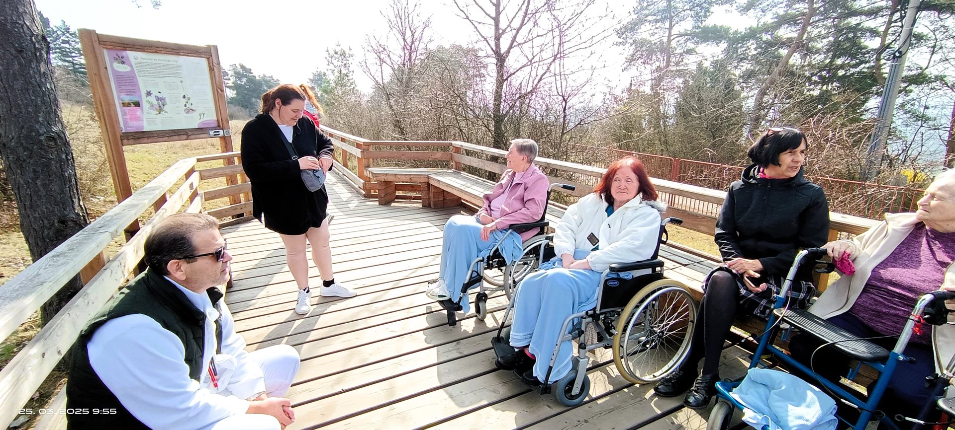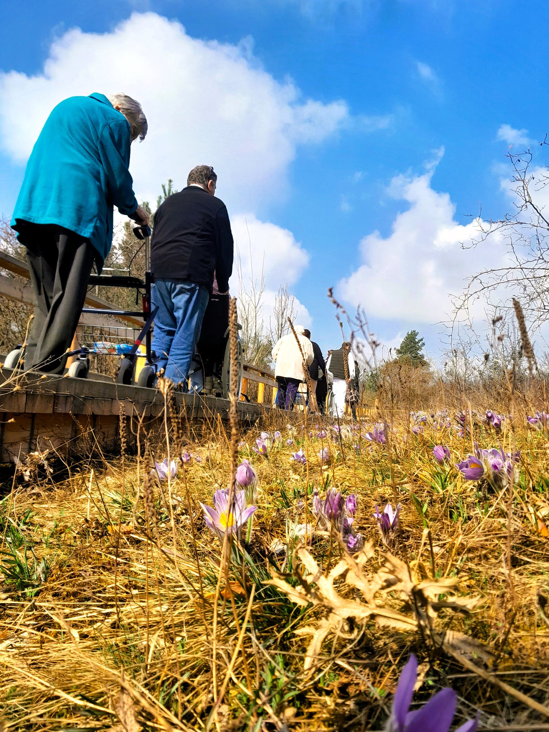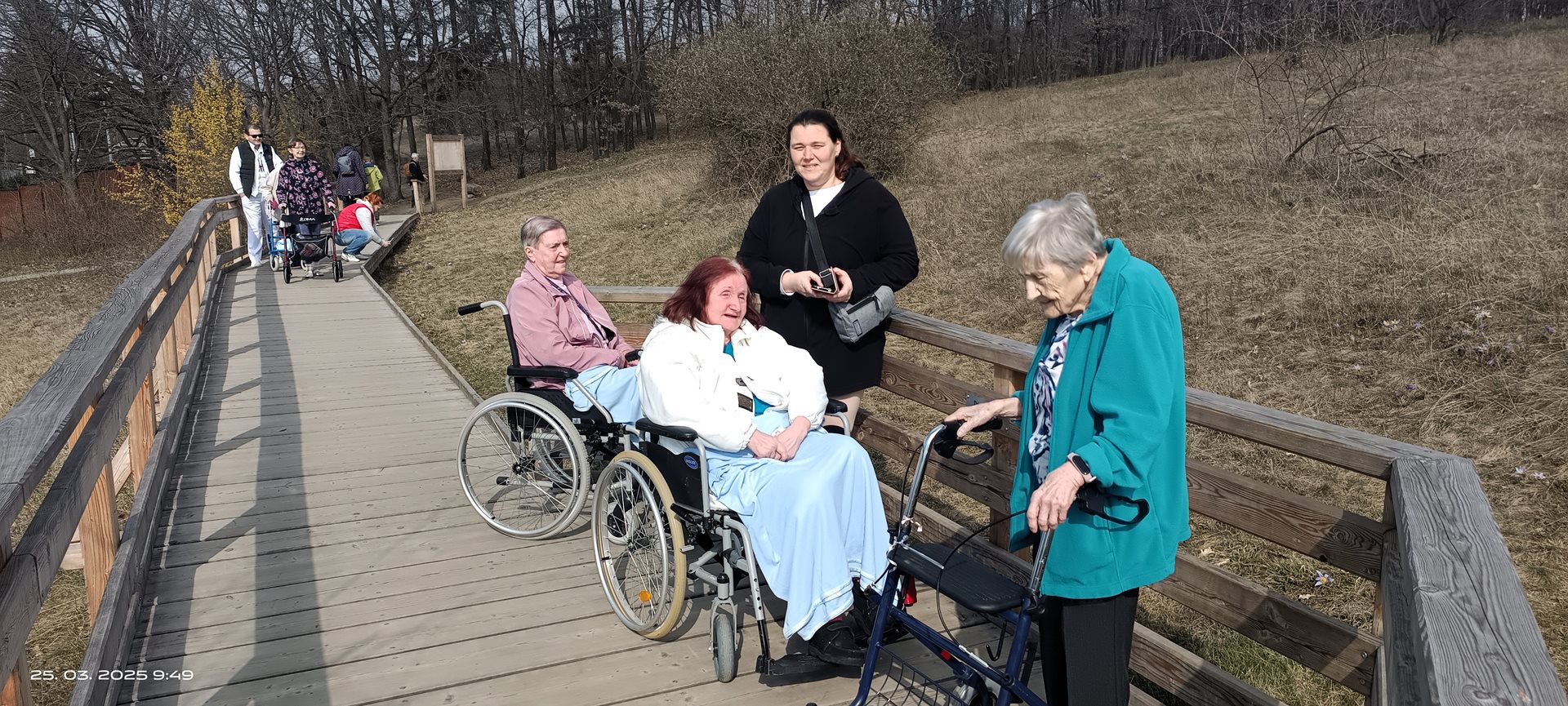 Dnes, 25. března, jsme si udělali výlet na louku plnou konikleců. Nachází se v Brně, opravdu blízko našeho Domova pro seniory. Počasí nám vyšlo, louka byla plná rozkvetlých konikleců, nádherný zážitek. Nebyli jsme tam sami, potkávali jsme další jedince či skupiny lidí, kteří se přišli taky podívat. Však někteří z nich se s námi i nechali vyfotografovat.