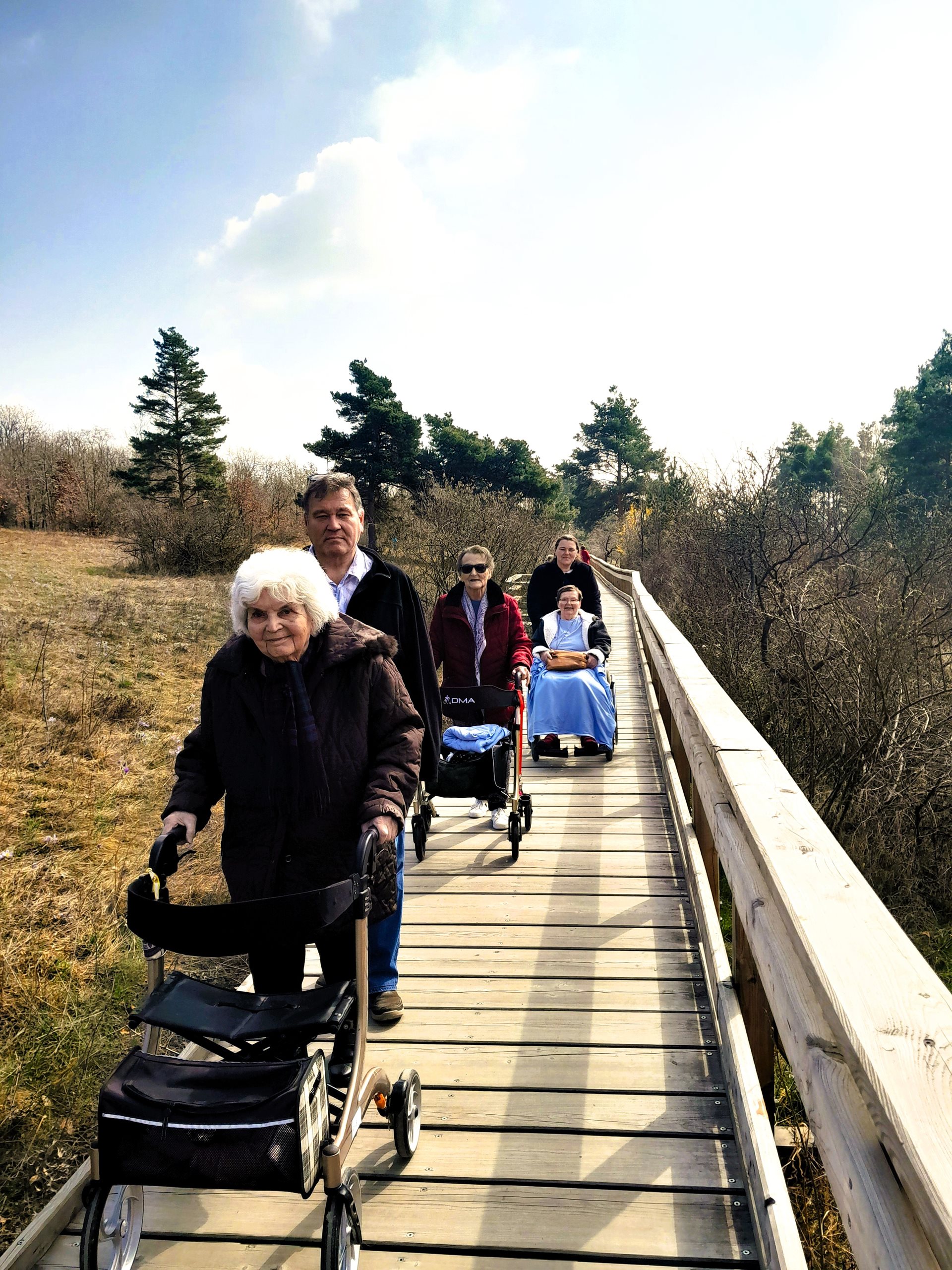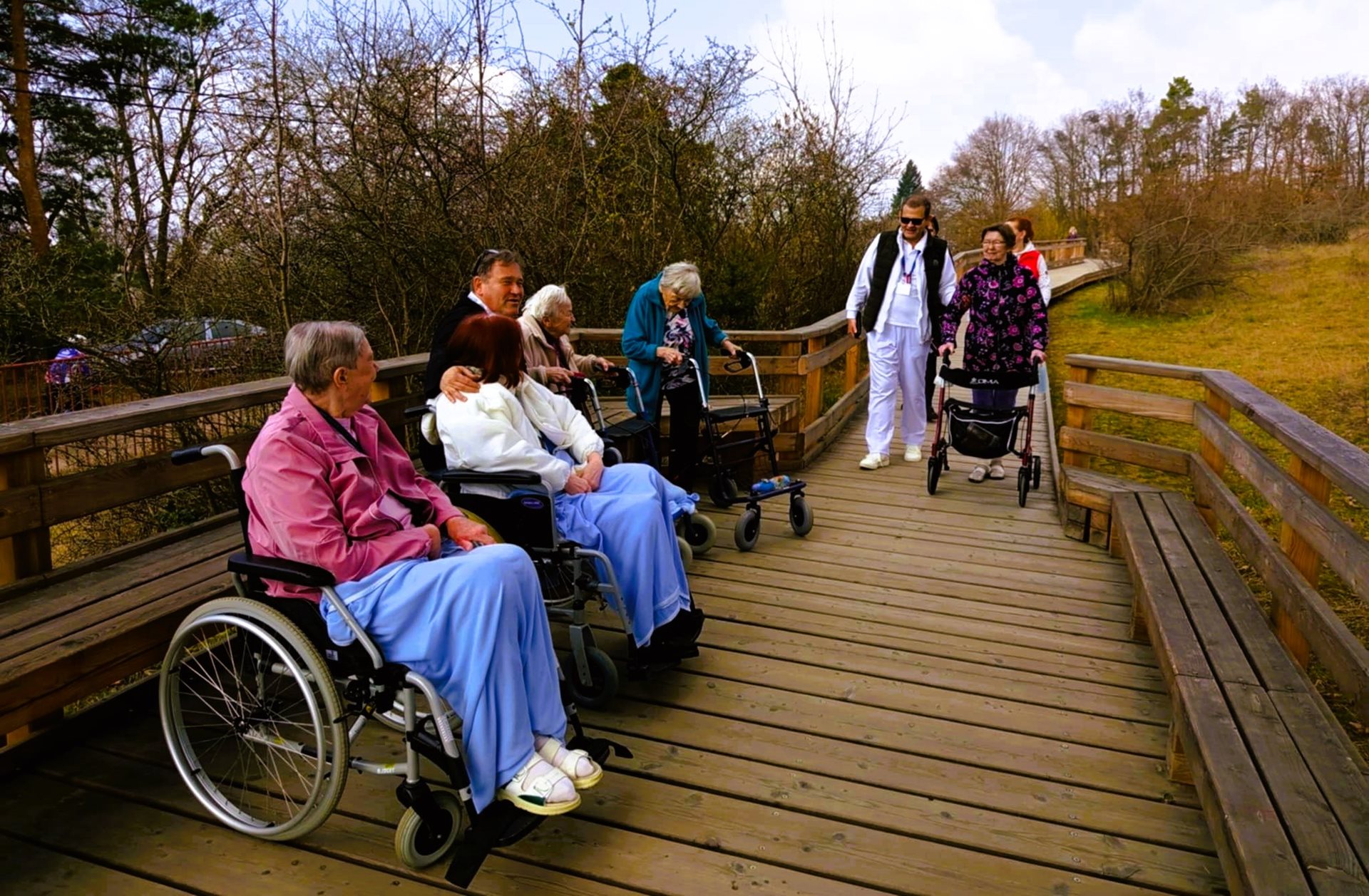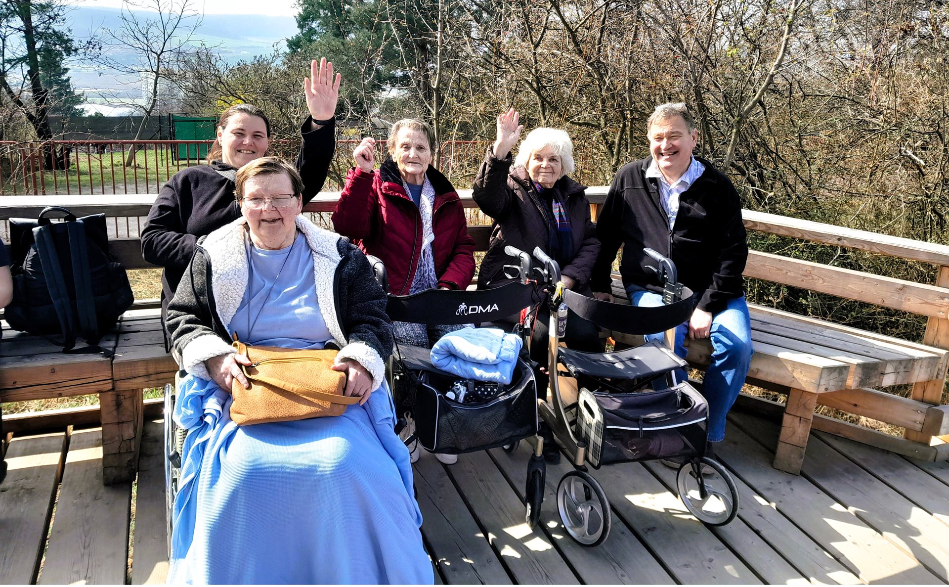 Dnes, 25. března, jsme si udělali výlet na louku plnou konikleců. Nachází se v Brně, opravdu blízko našeho Domova pro seniory. Počasí nám vyšlo, louka byla plná rozkvetlých konikleců, nádherný zážitek. Nebyli jsme tam sami, potkávali jsme další jedince či skupiny lidí, kteří se přišli taky podívat. Však někteří z nich se s námi i nechali vyfotografovat.