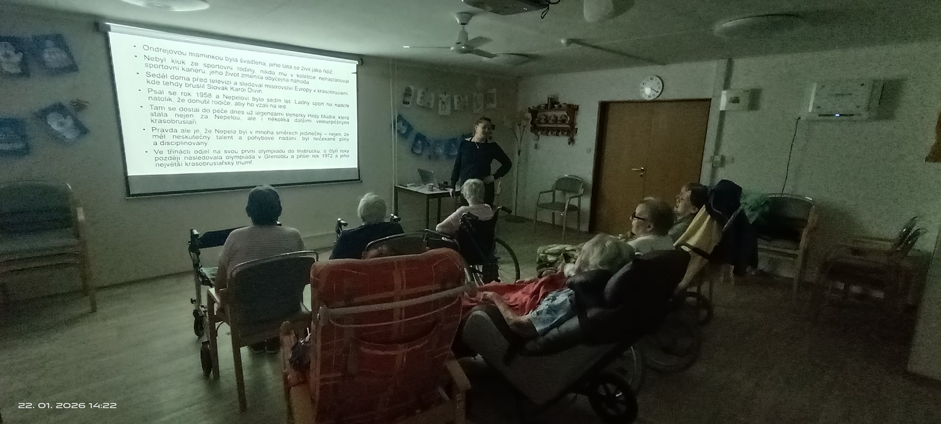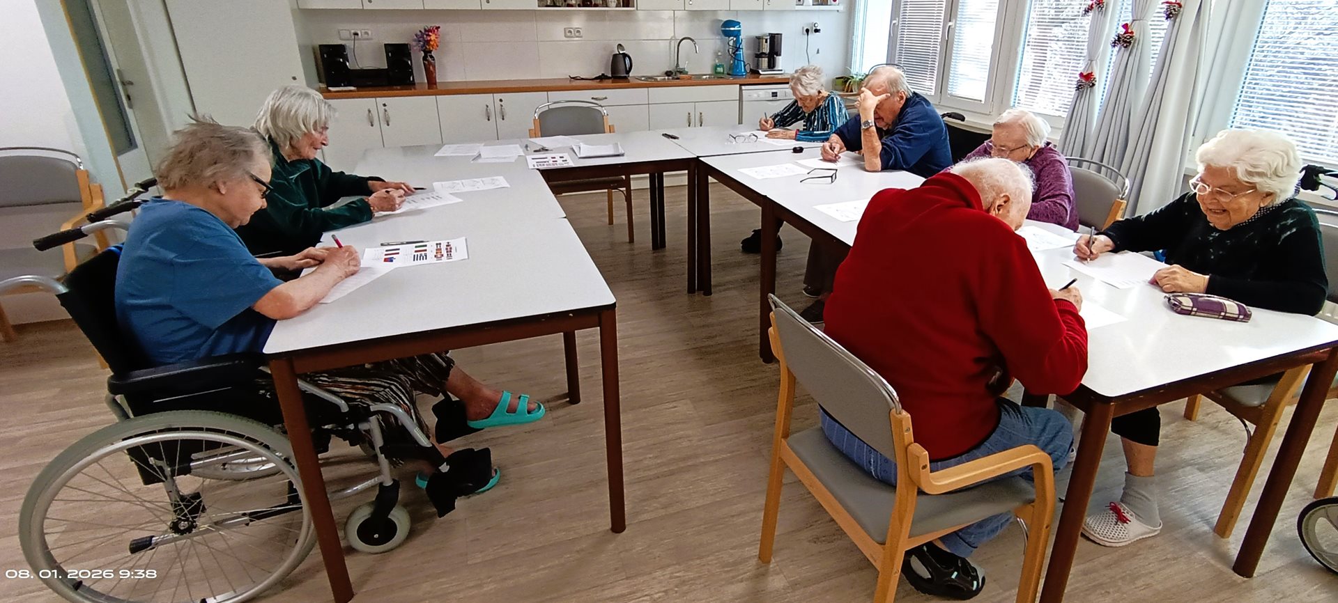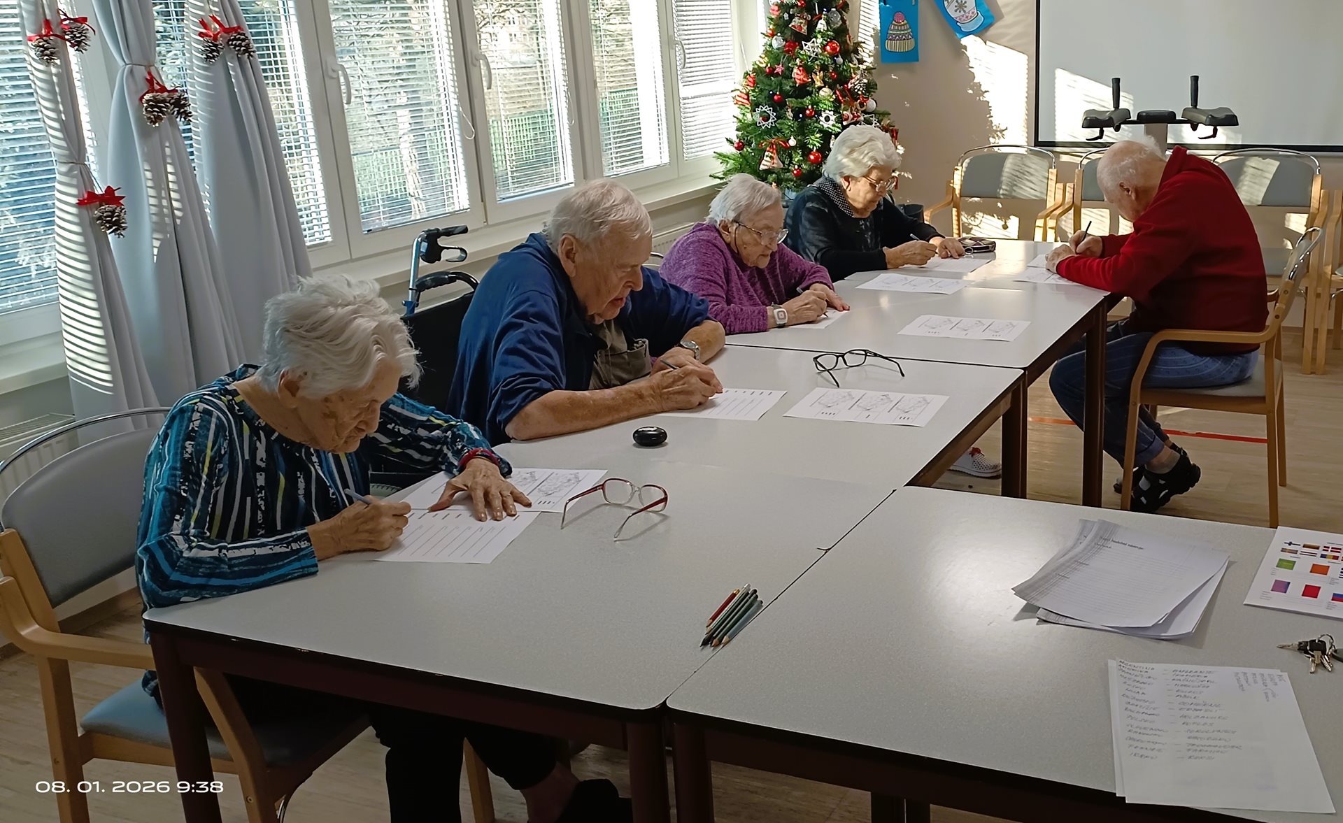 V novém roce pokračujeme ve stálých pravidelných aktivitách, které mají naši klienti rádi. Takže trénujeme paměť, připomínáme si zajímavé osobnosti aktuálního týdne, trochu tvoříme a kreslíme, cestujeme s dokumenty po české zemi a trochu si hrajeme a soutěžíme : žolíka, člobrdo a petanque či bingo....